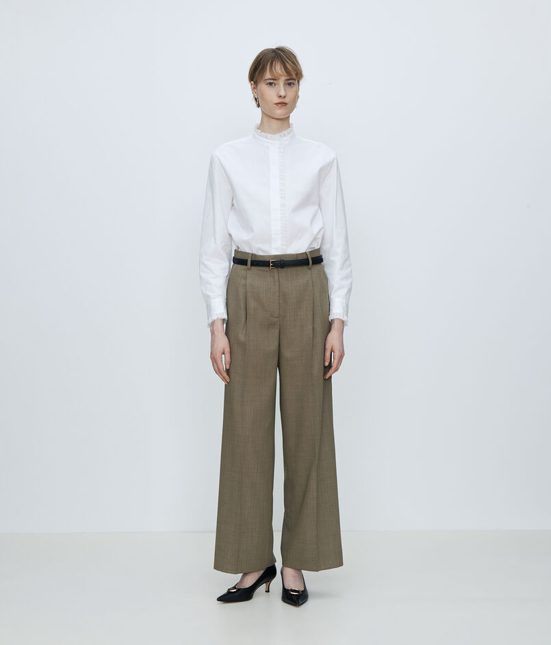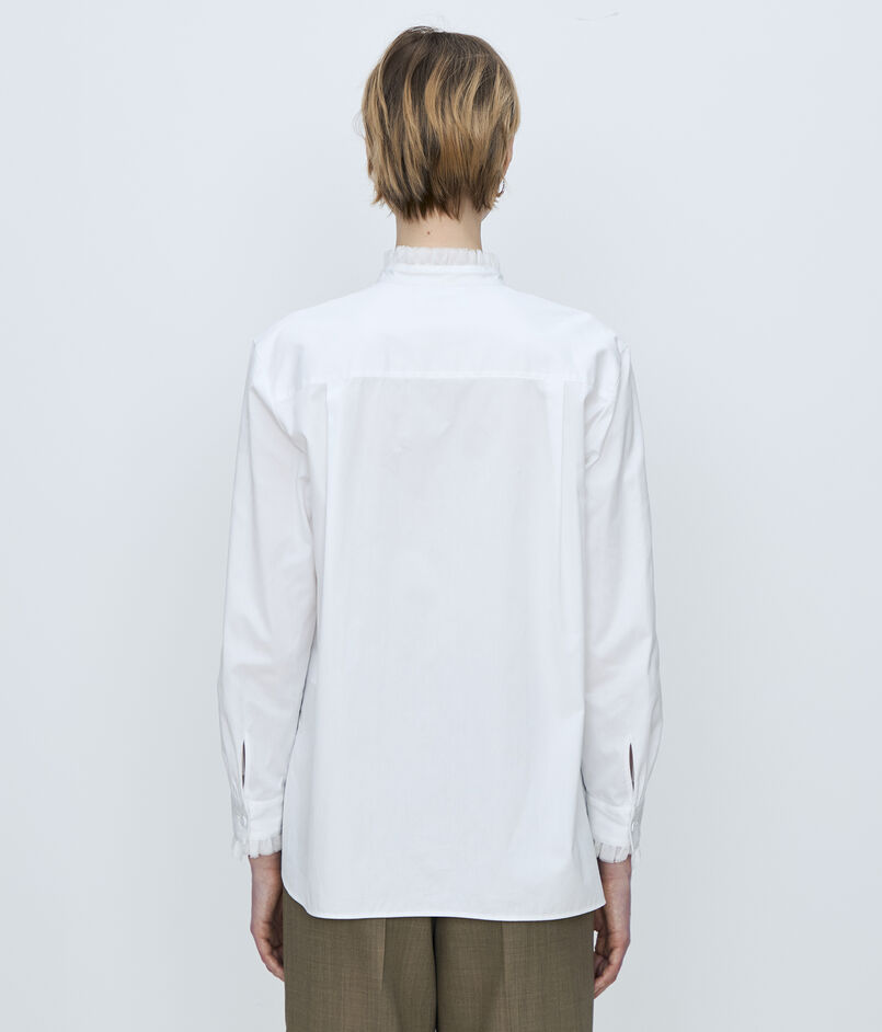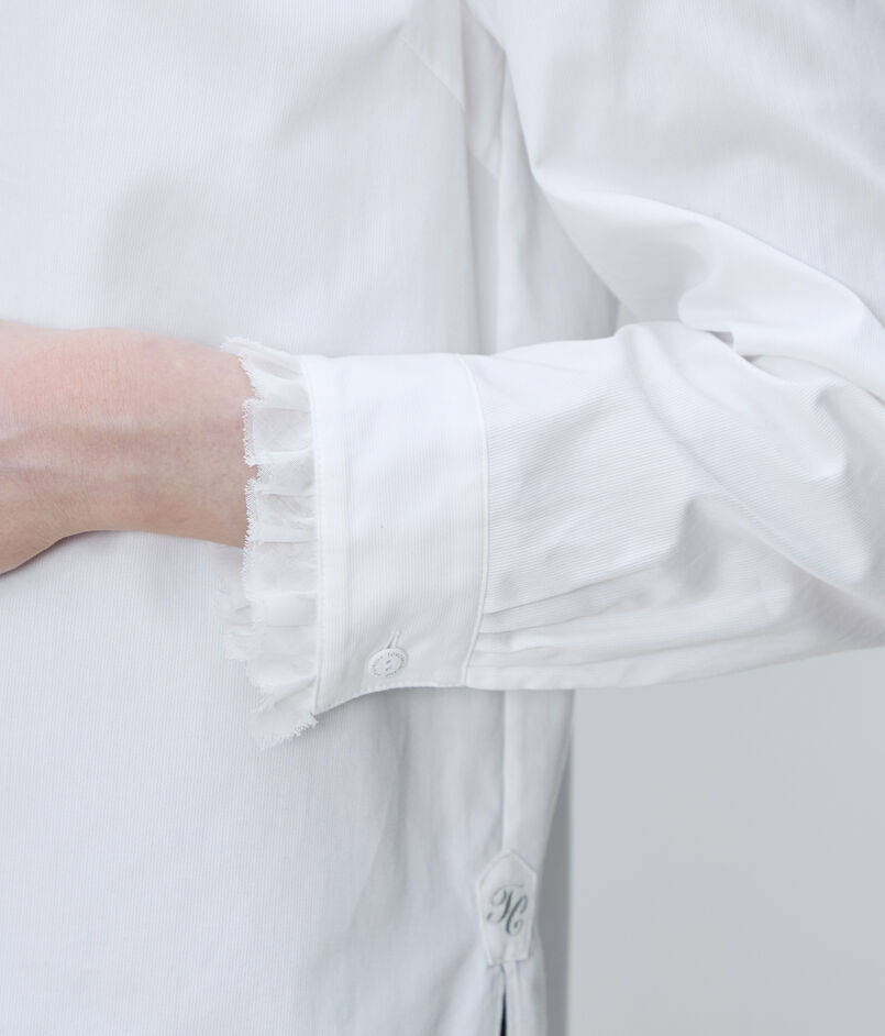 ジャケットやニットのインナーに合わせた時に袖口からちらりとフリルが覗くよう、少し長めの袖丈に仕上げています。
