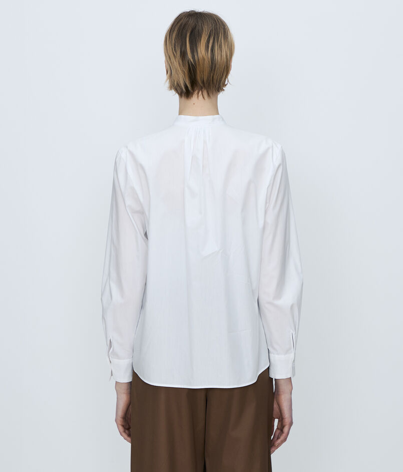 襟ぐりと袖口のタックによって立体感が生まれ、着るだけで華やかさが引き立つ一枚。