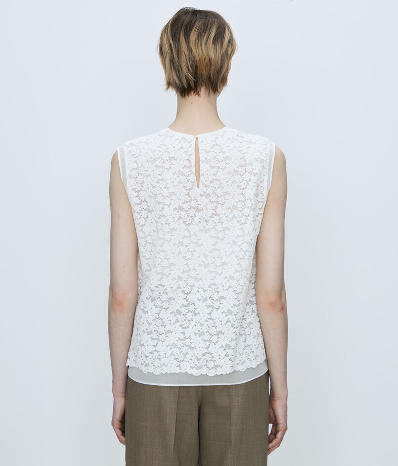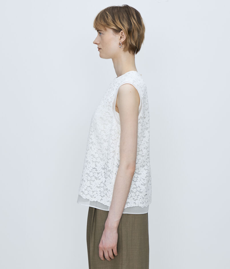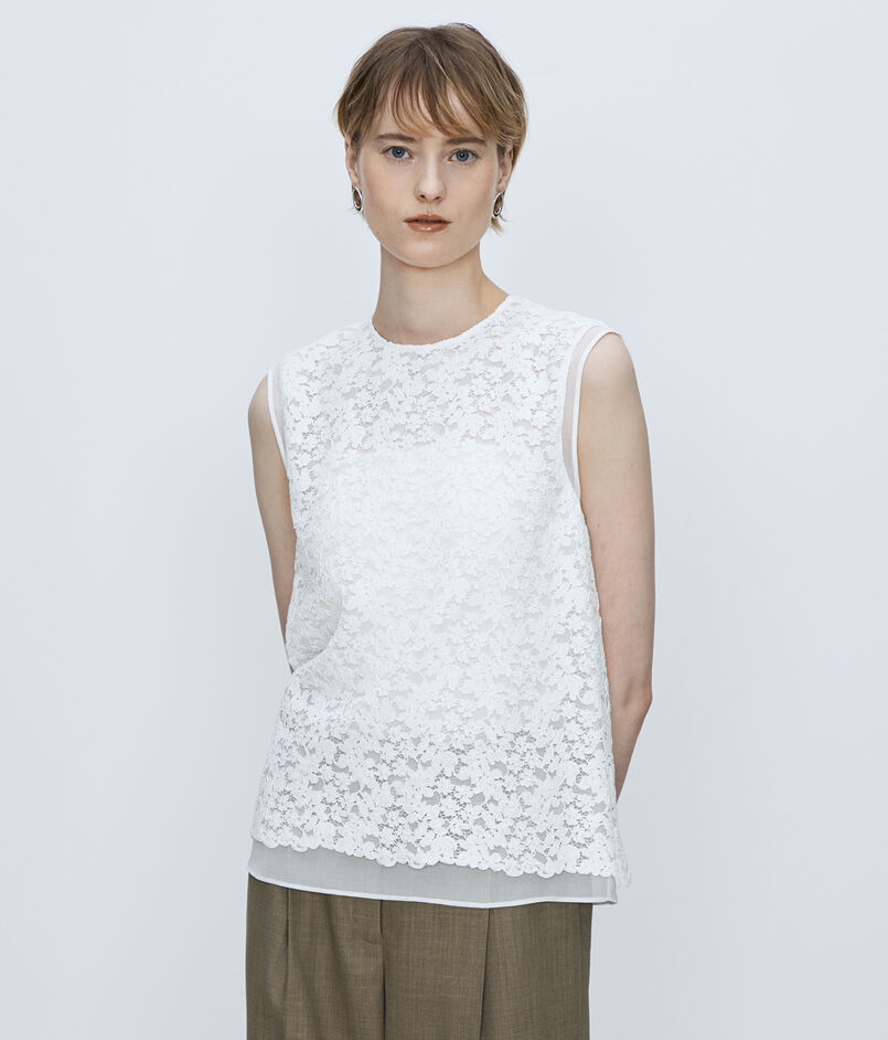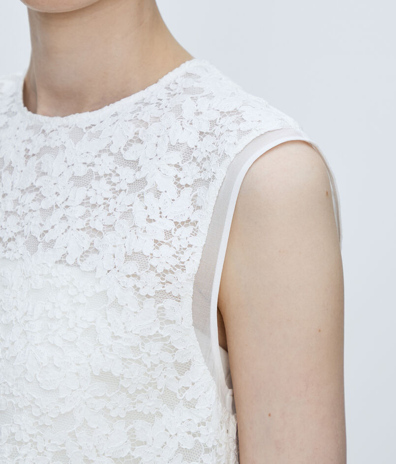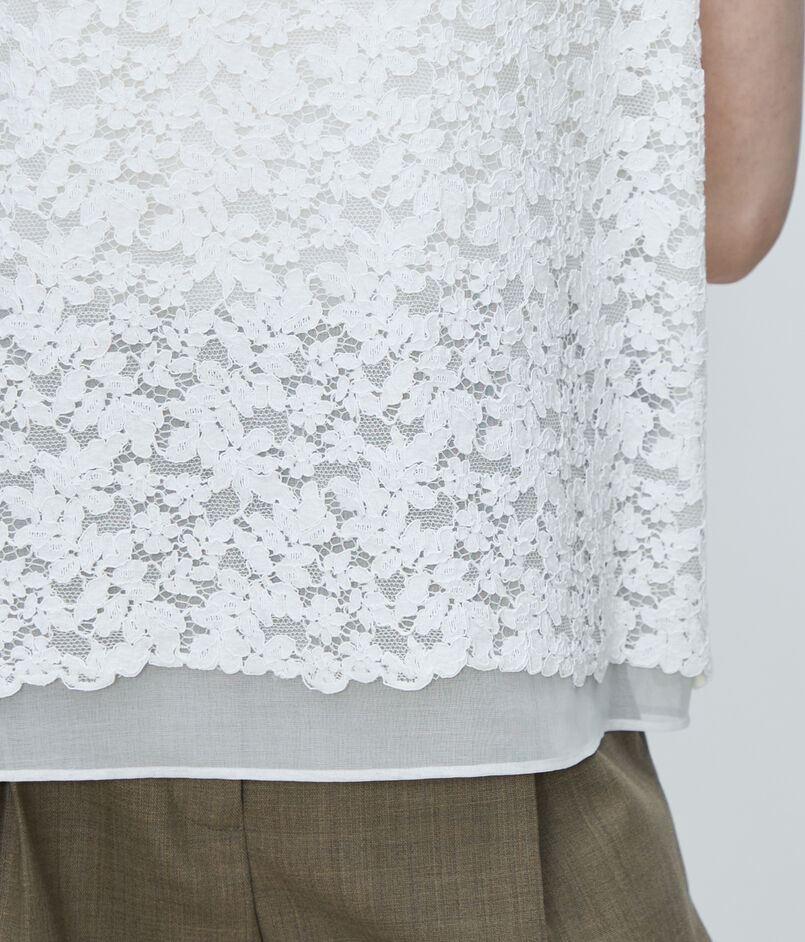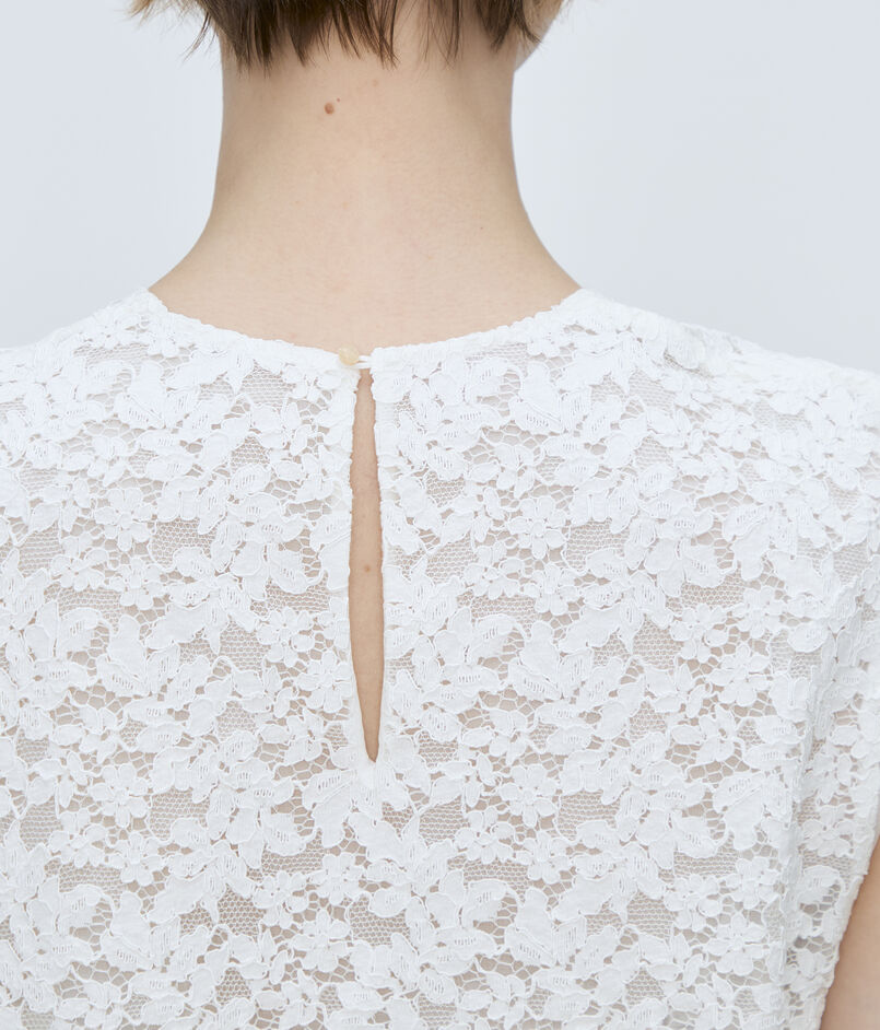 レース生地とコットンオーガンジーを重ね、ボディからほど良く離れた軽やかなシルエットにすることで涼しげな印象に。