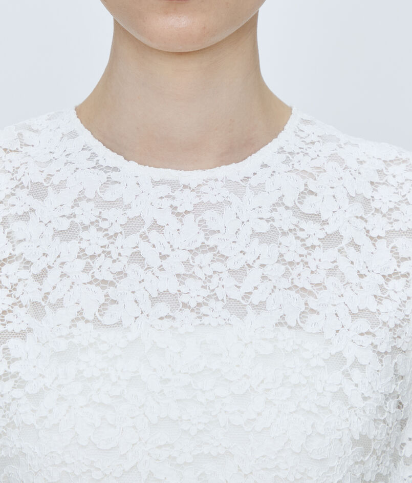 リーフモチーフをベースに小さなフラワーモチーフを組み合わせた、〈TOMORROWLAND collection〉オリジナルのレース素材を使用したブラウス。