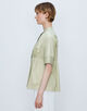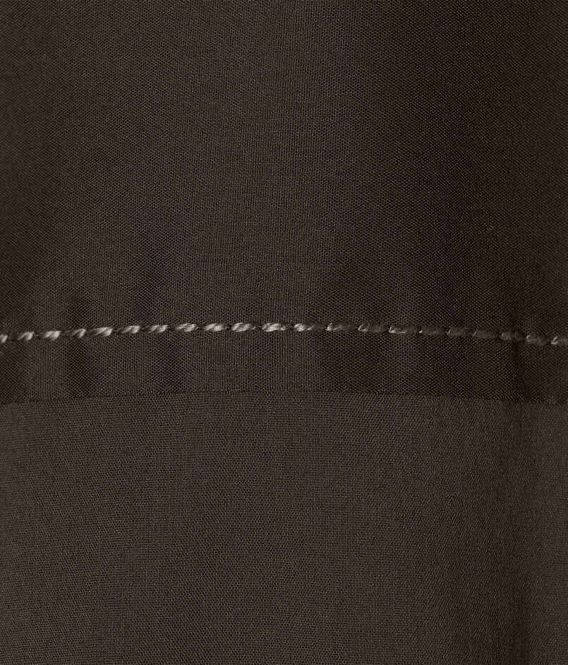 襟ぐりや袖口に太番手のステッチを施すことでアクセントをプラスしています。