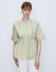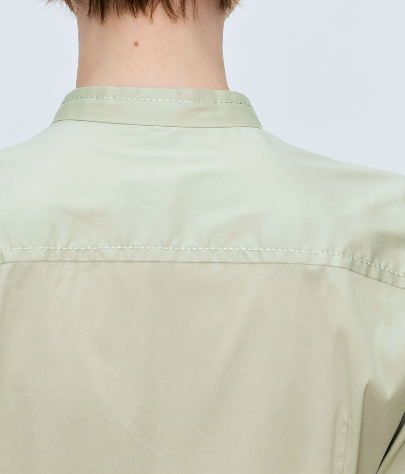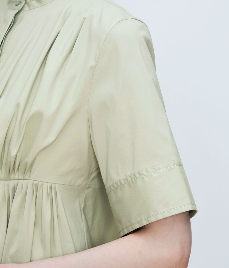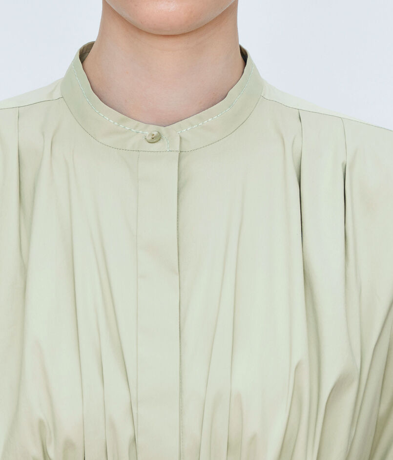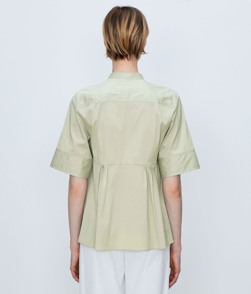 しっとりとしたタッチとナチュラルな光沢感が特徴の、上質なコットンナイロンのブロード素材を使用したブラウス。