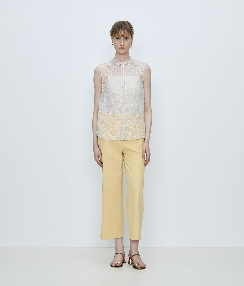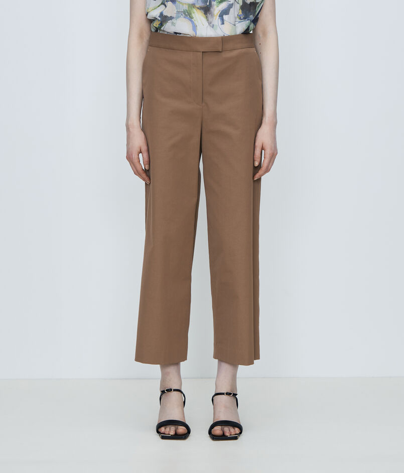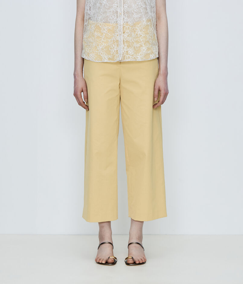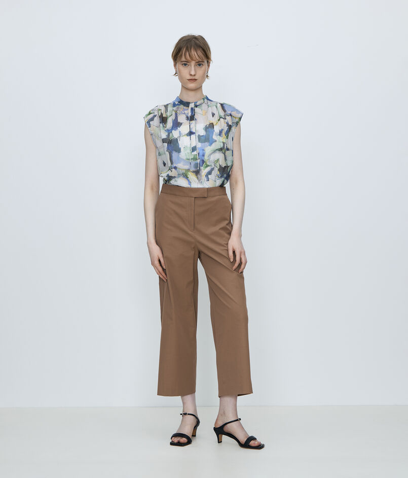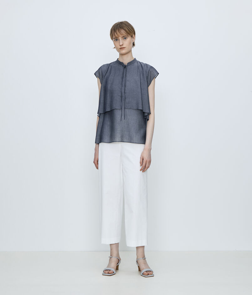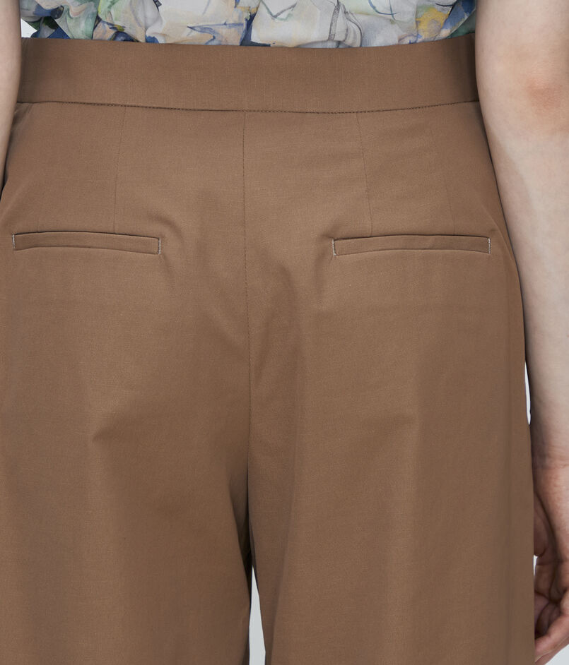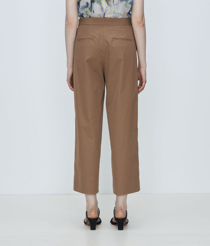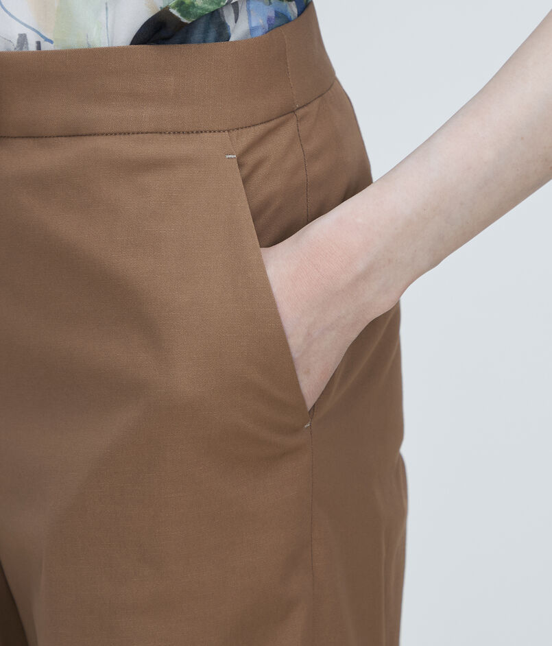 自然な光沢とドライなタッチとしなやかな落ち感が特徴のツイル素材を使用した〈TOMORROWLAND collection〉の定番パンツ。