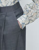 パンツはフロントに施したタックと長めの着丈、ワイドシルエットで存在感たっぷりの一着。