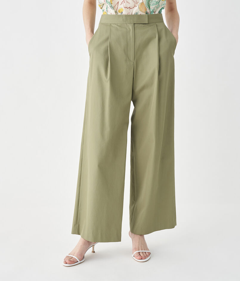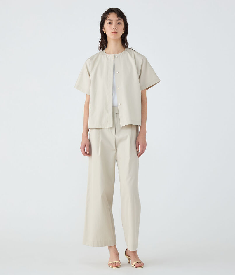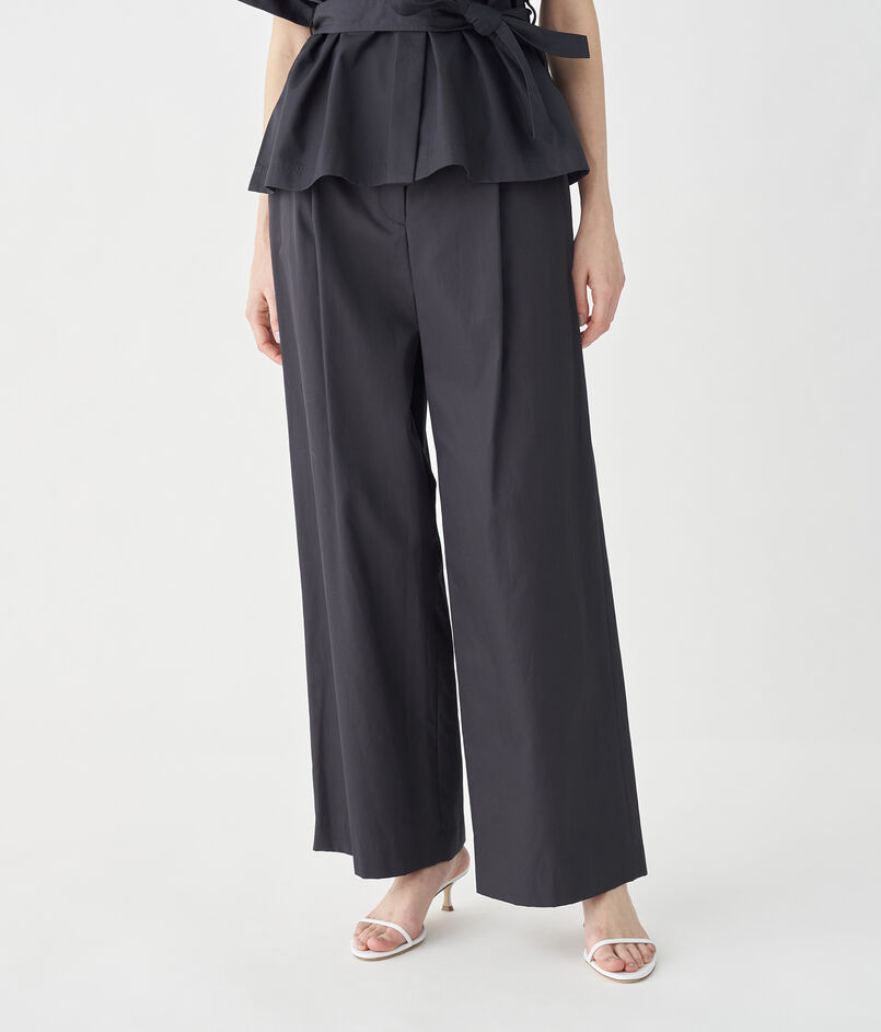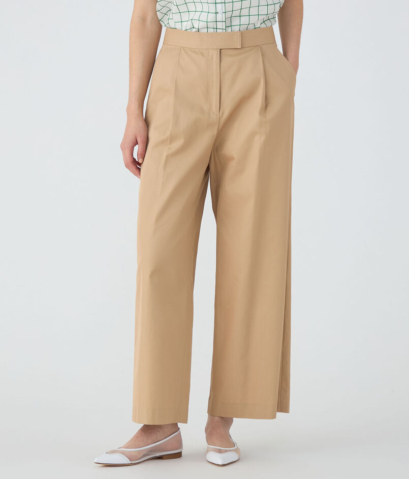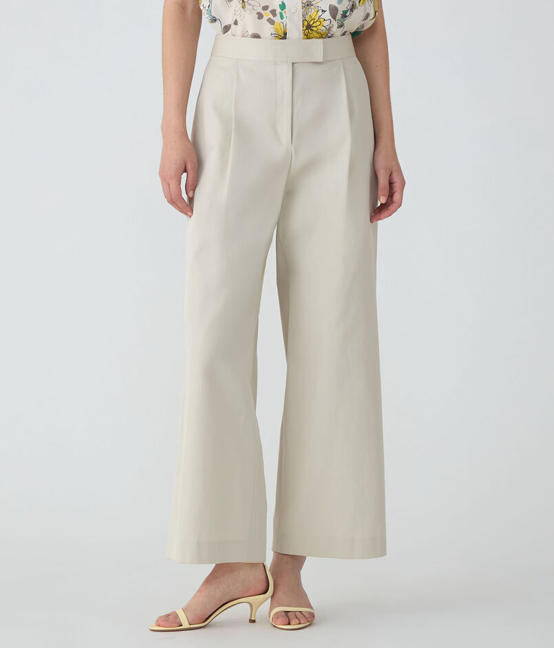 コットンギャバジン タックワイドパンツ