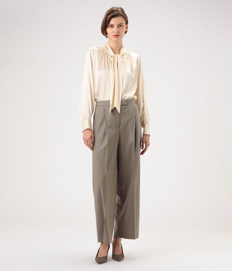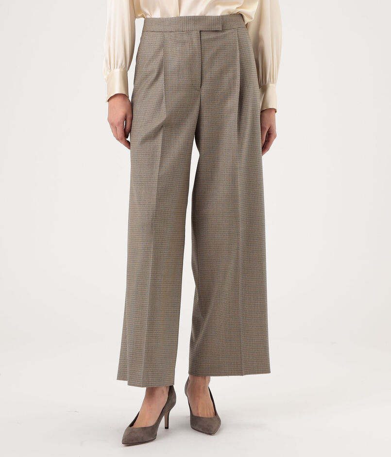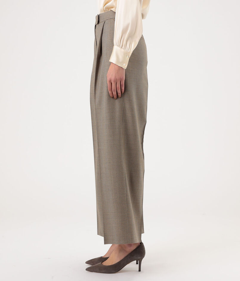 落ち着いたベージュベースにブラウン系のガンクラブチェック柄で、クラシカルな雰囲気に仕上げています。