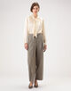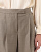 パンツはフロントに施したタックと長めの着丈、ワイドシルエットで存在感たっぷりの一着。