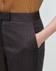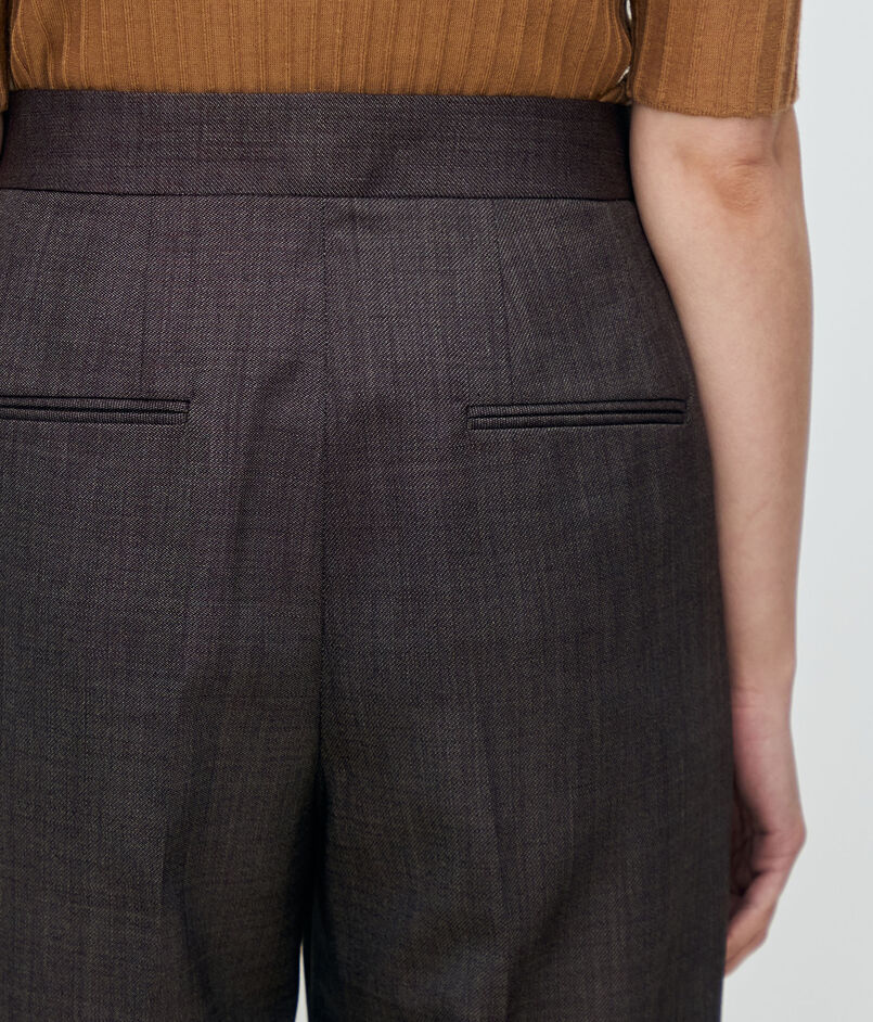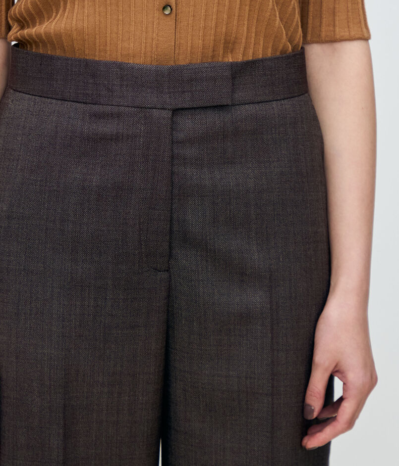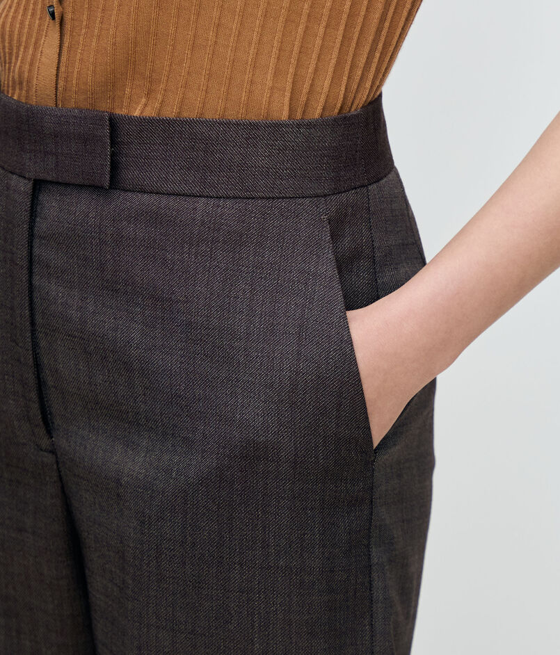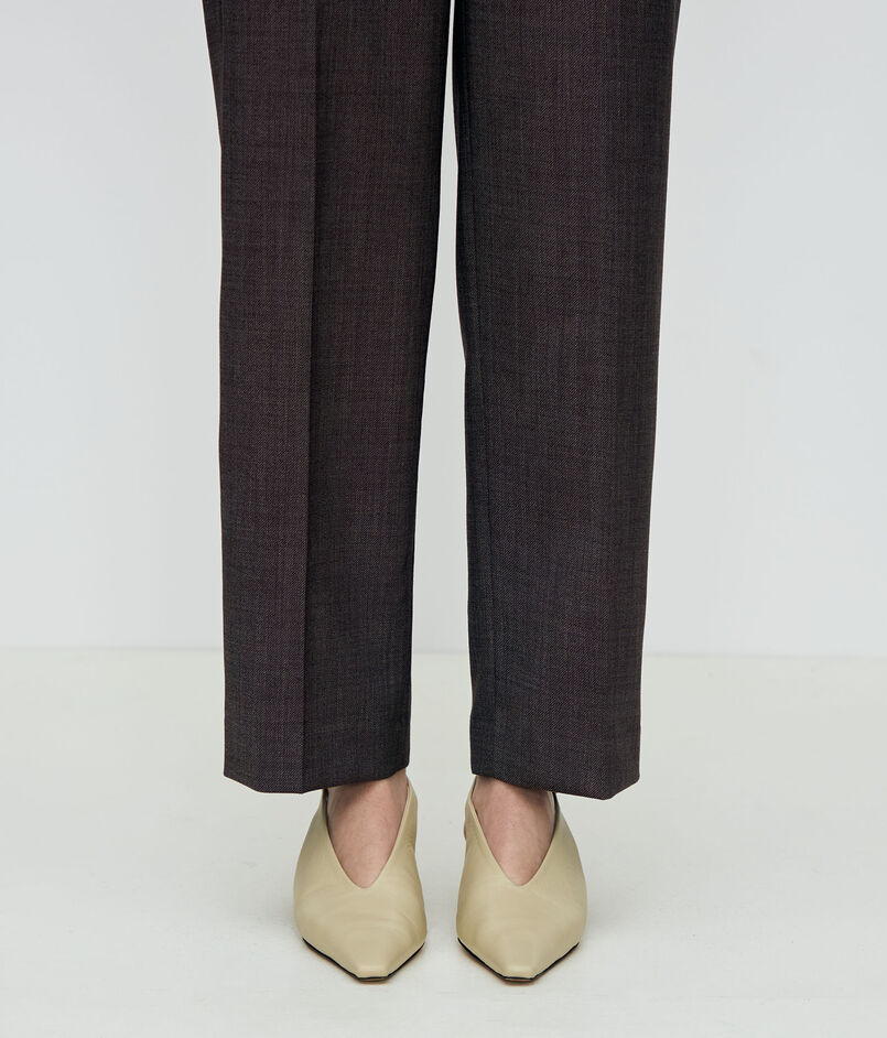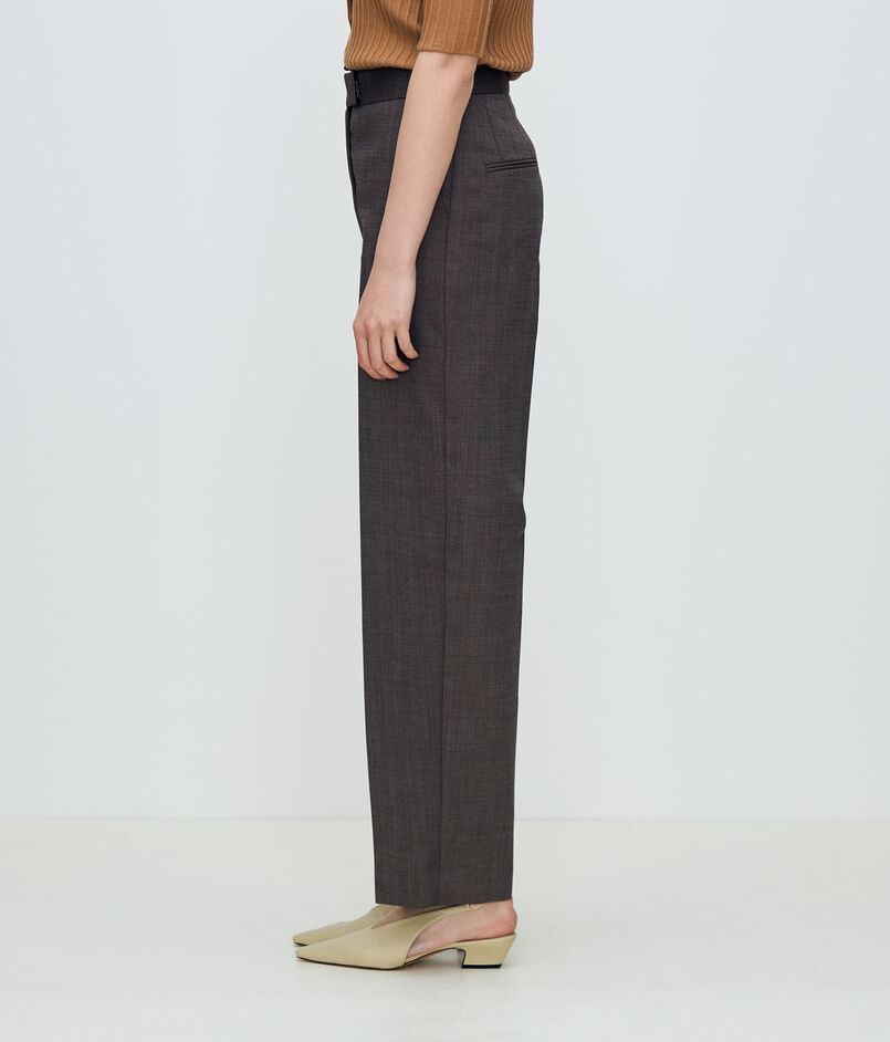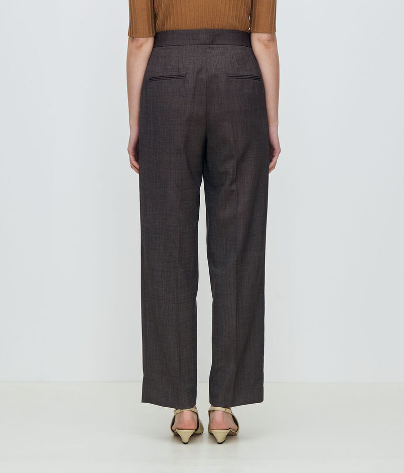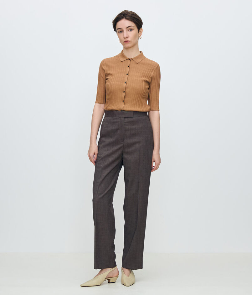 パンツは裾に向かってすとんと落ちるストレートシルエットにコンパクトなヒップまわりですっきりした女性らしい印象に仕上げました。