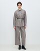 裾に向かってすとんと落ちるストレートシルエットにコンパクトなヒップまわりですっきりとした印象の一着。