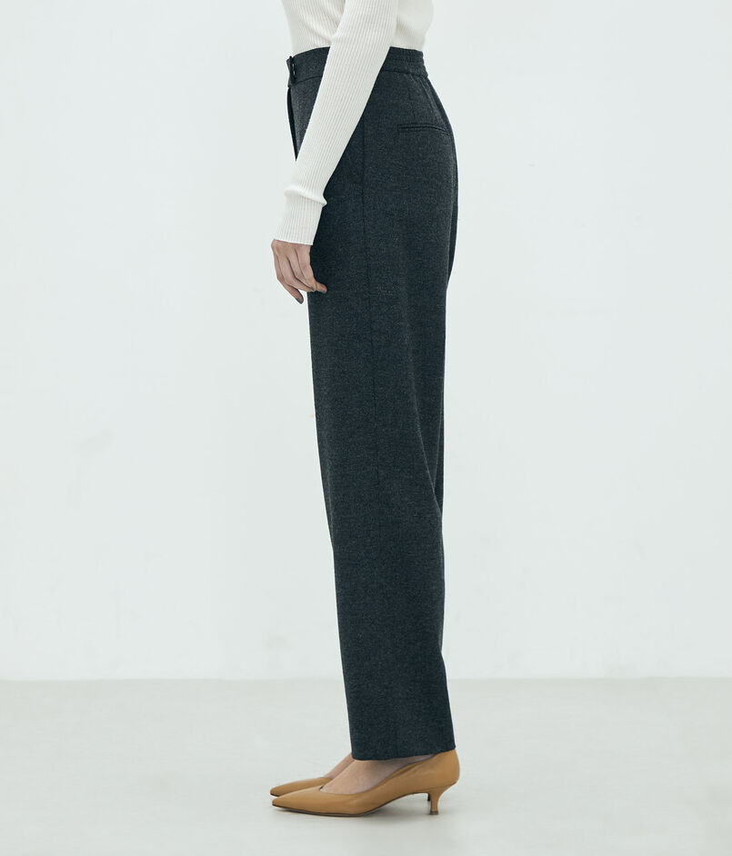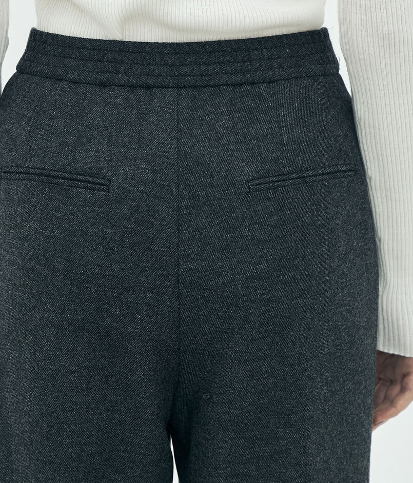 バックウエストのみゴム仕様で、タックイン・アウトどちらも美しく着こなしていただけます。
