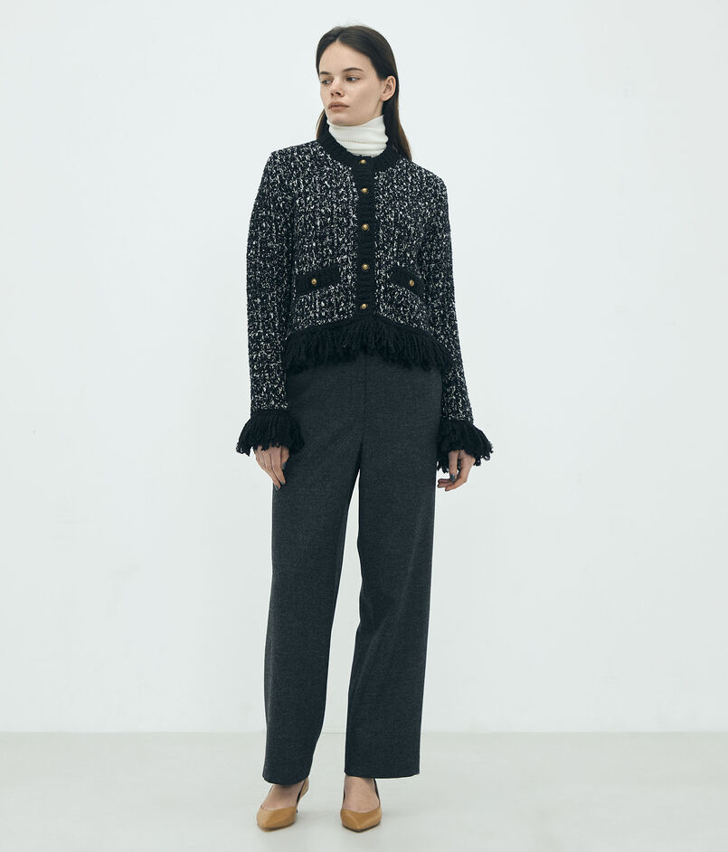 温かみがありつつも上品で洗練された雰囲気のツイード素材を使用したパンツ。