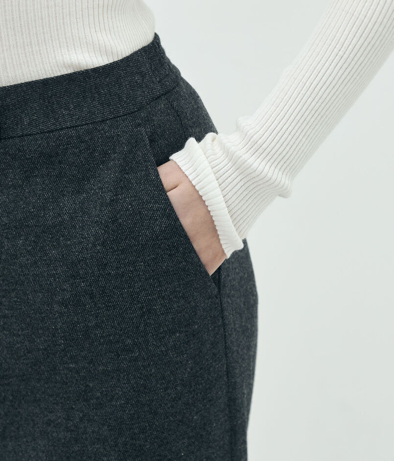 裾に向かってすとんと落ちるストレートシルエットにコンパクトなヒップまわりで、さまざまなトップスとコーディネートしやすい、着回し力のあるデザインに仕上げました。