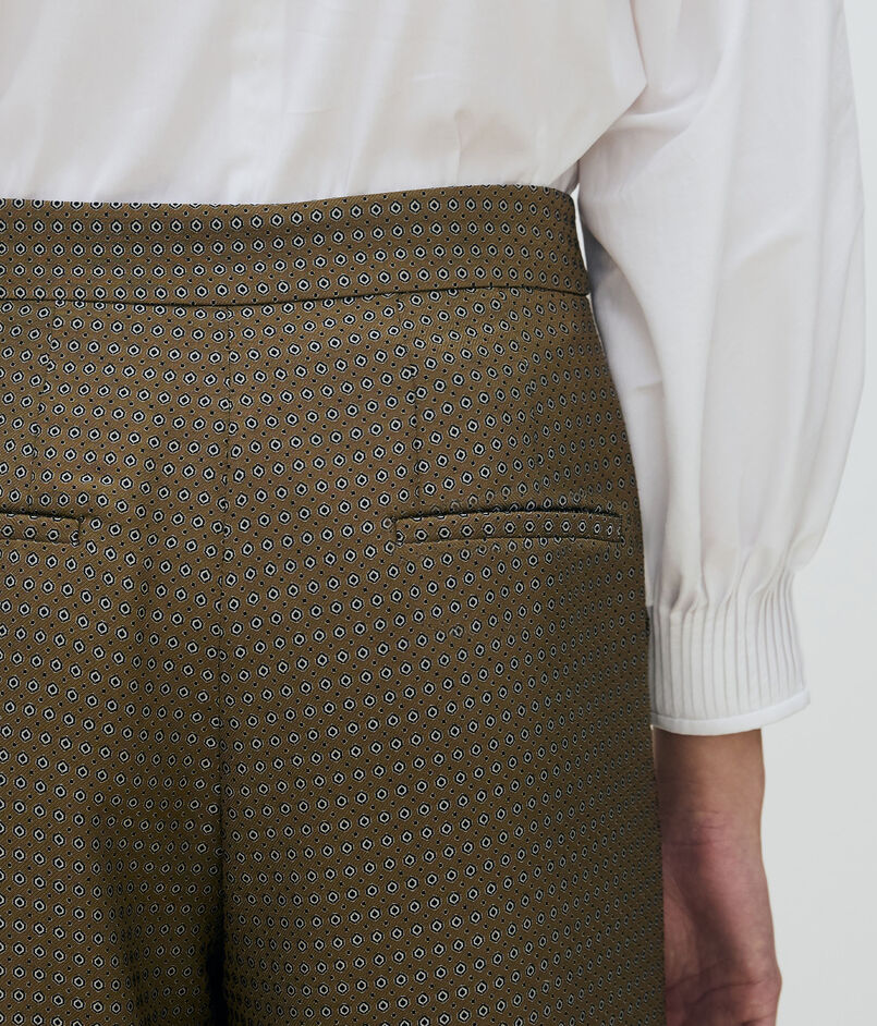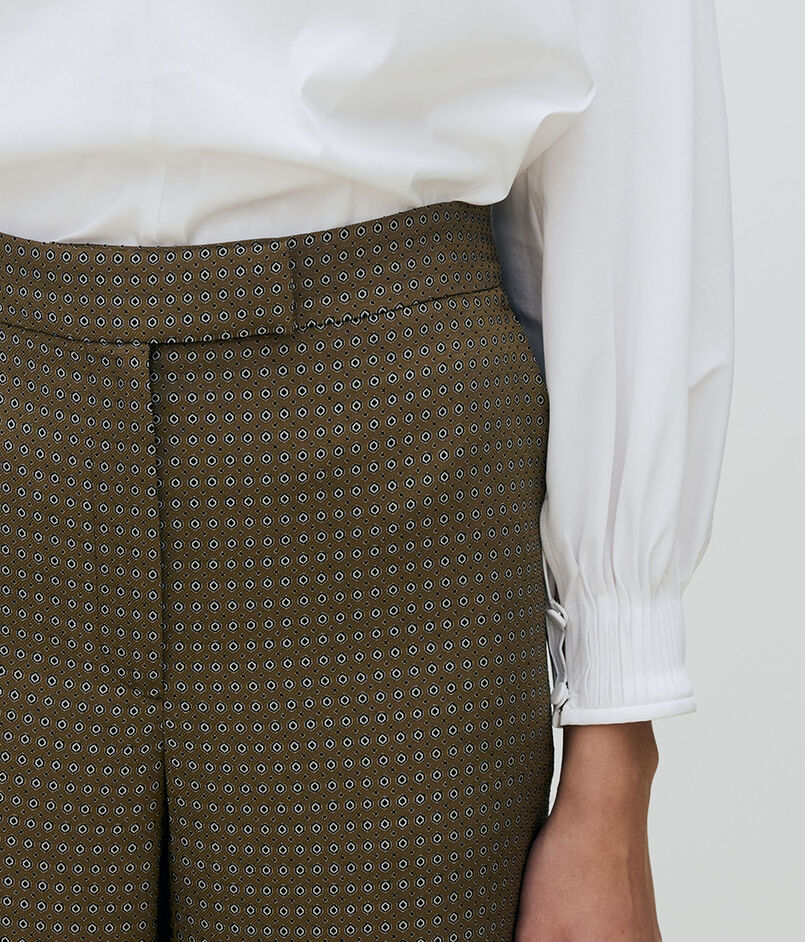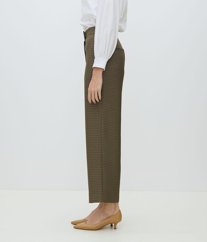 シックな配色と柄で表現した〈TOMORROWLAND collection〉オリジナルのドットジャカード素材を使用したパンツ。