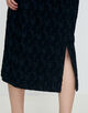 バックに入れた長めのスリットで足さばき良く仕上げています。