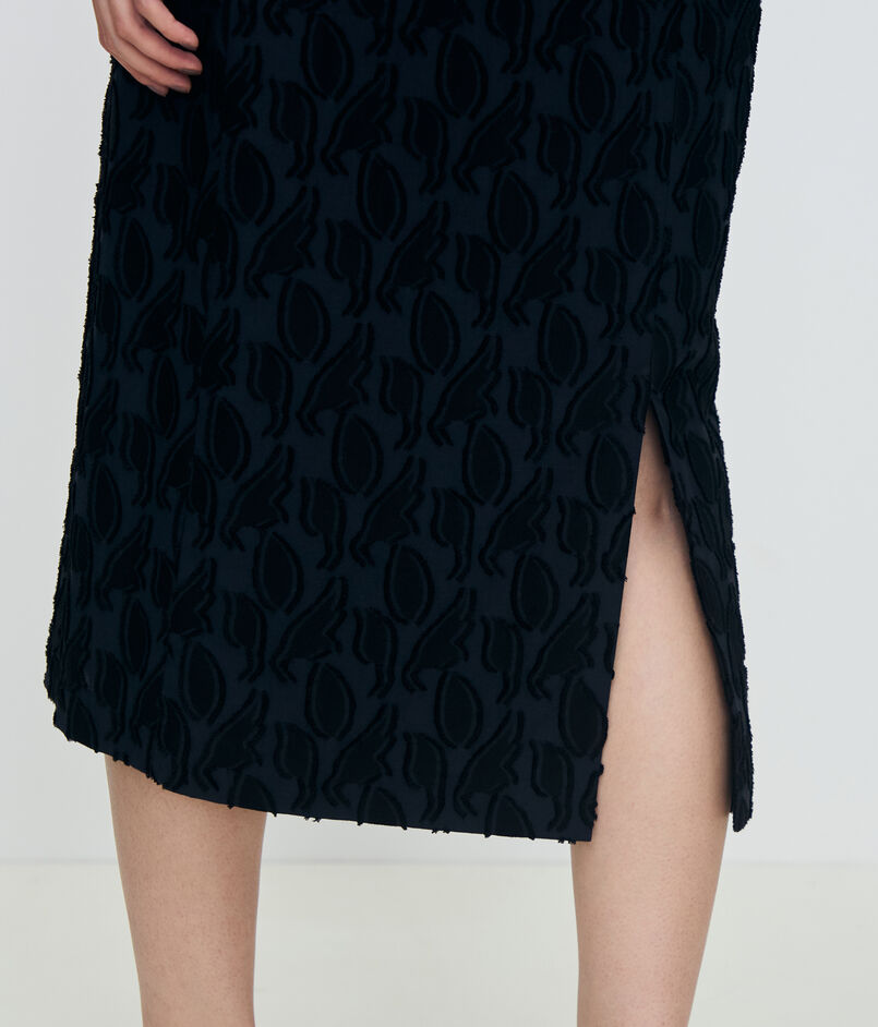 ほのかな光沢感のあるコットンキュプラ素材にリーフモチーフのカットジャカードを施したシリーズ。