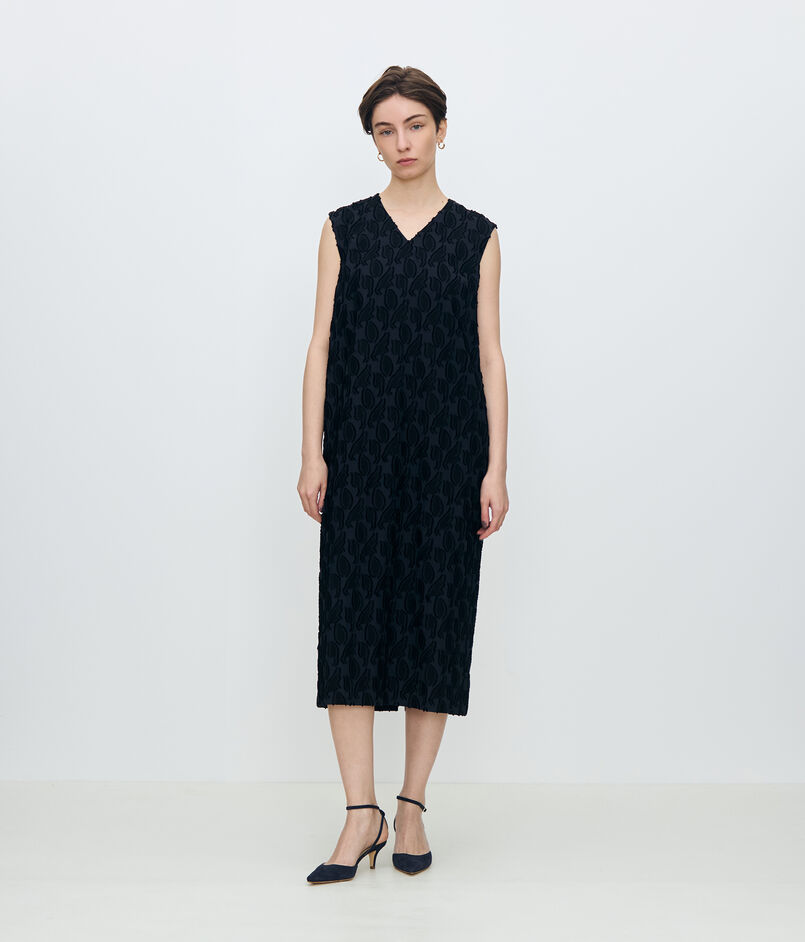 シャイニーカットジャカード Vネックワンピース