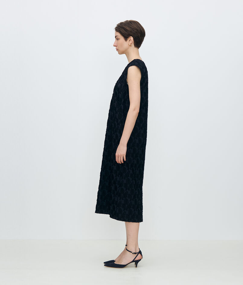 一枚でフォーマルなシーンにはもちろん、ジャケットを羽織ってお仕事着に、カーディガンとフラットシューズを合わせてカジュアルダウンするなど、幅広いシーンにお召しいただけるアイテムです。