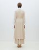 共地のベルトできゅっとウエストマークしたり、フロントを開けてロングジレ感覚で着こなすなど、さまざまなスタイリングをお楽しみいただけます。