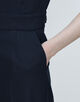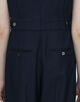 アームホールのニュアンスにこだわったコンビネゾンは、パンツ部分をシャープなストレートシルエットにすることですっきりと着こなせる一枚。