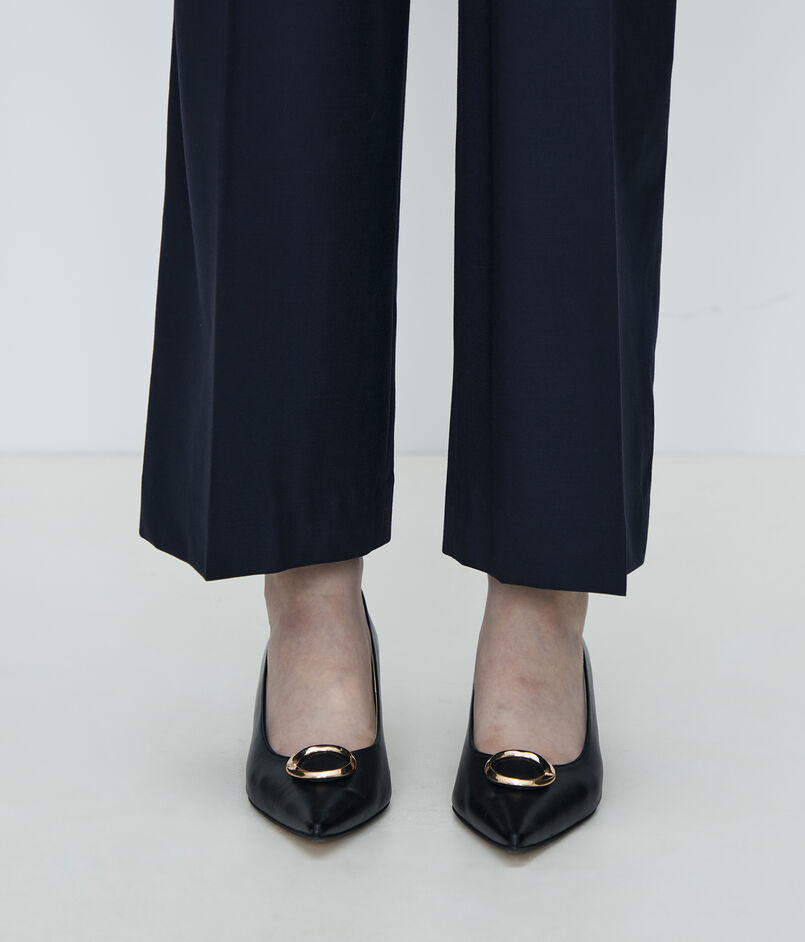 両サイドに配したボタンでウエストをアジャストでき、着こなしに合わせて微調整していただけます。