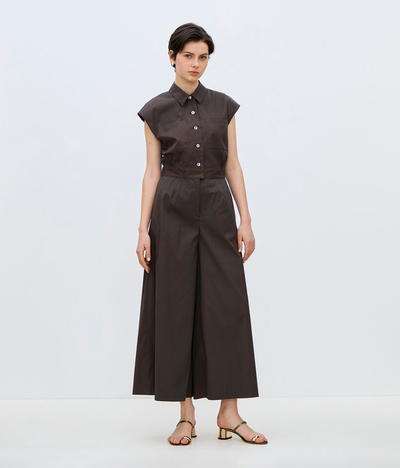 シャツとワイドパンツをセットアップで着ているようなデザインに仕上げました。
