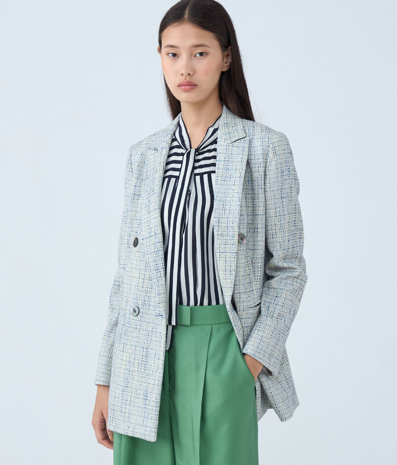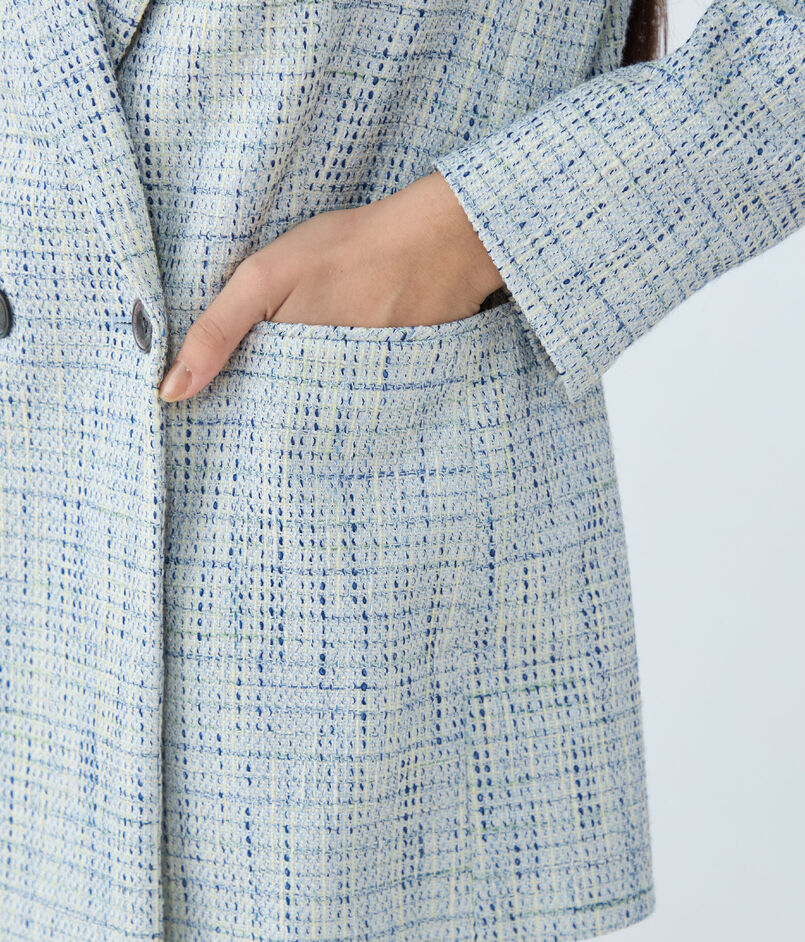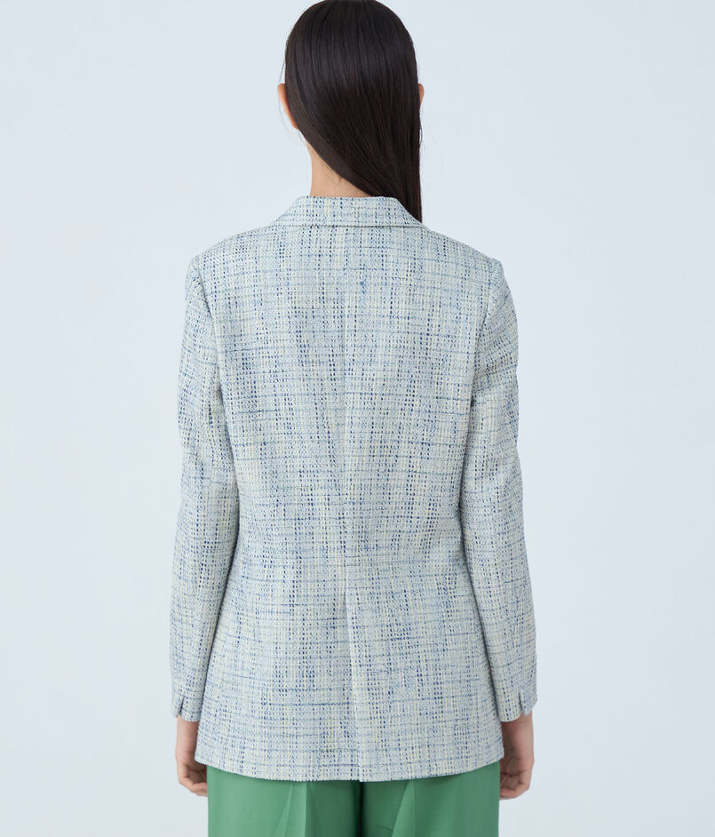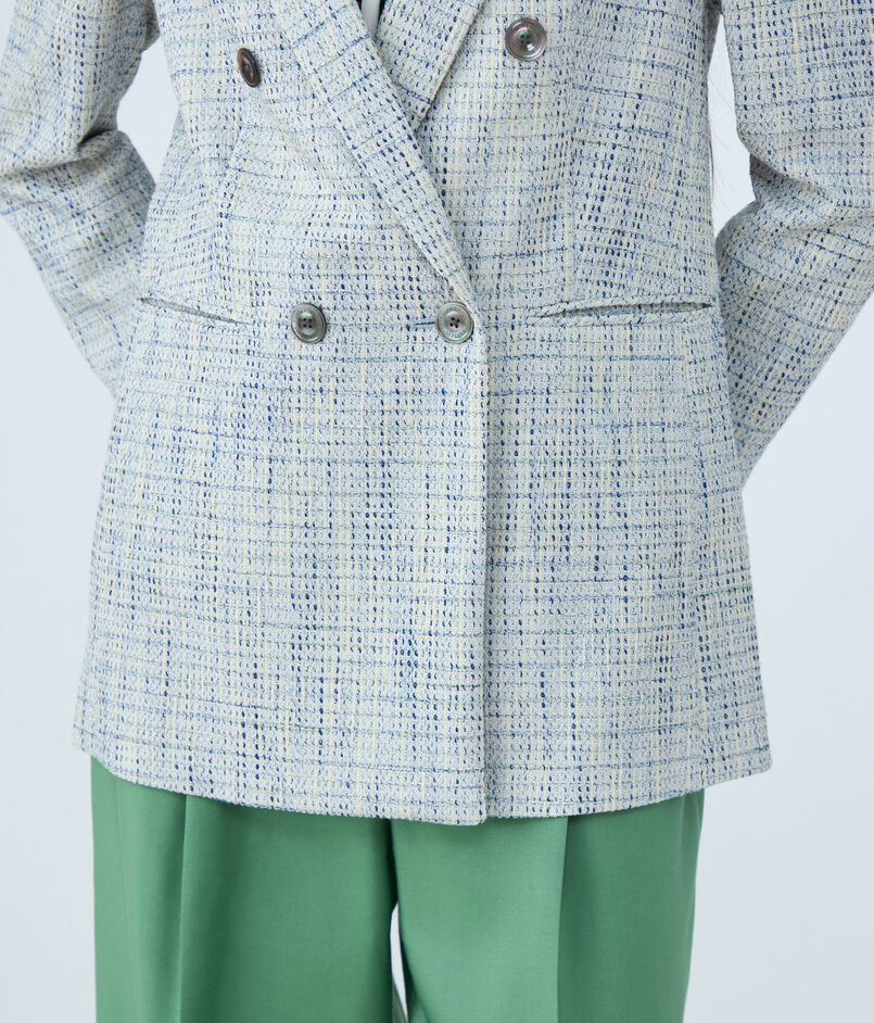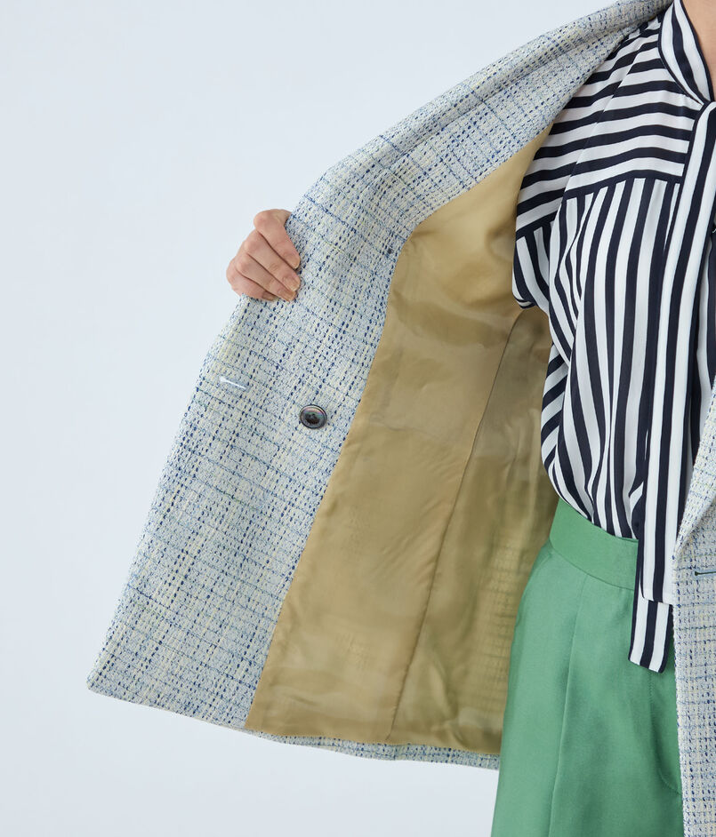 ツイードならではの凹凸のある表面感が魅力のジャケット。