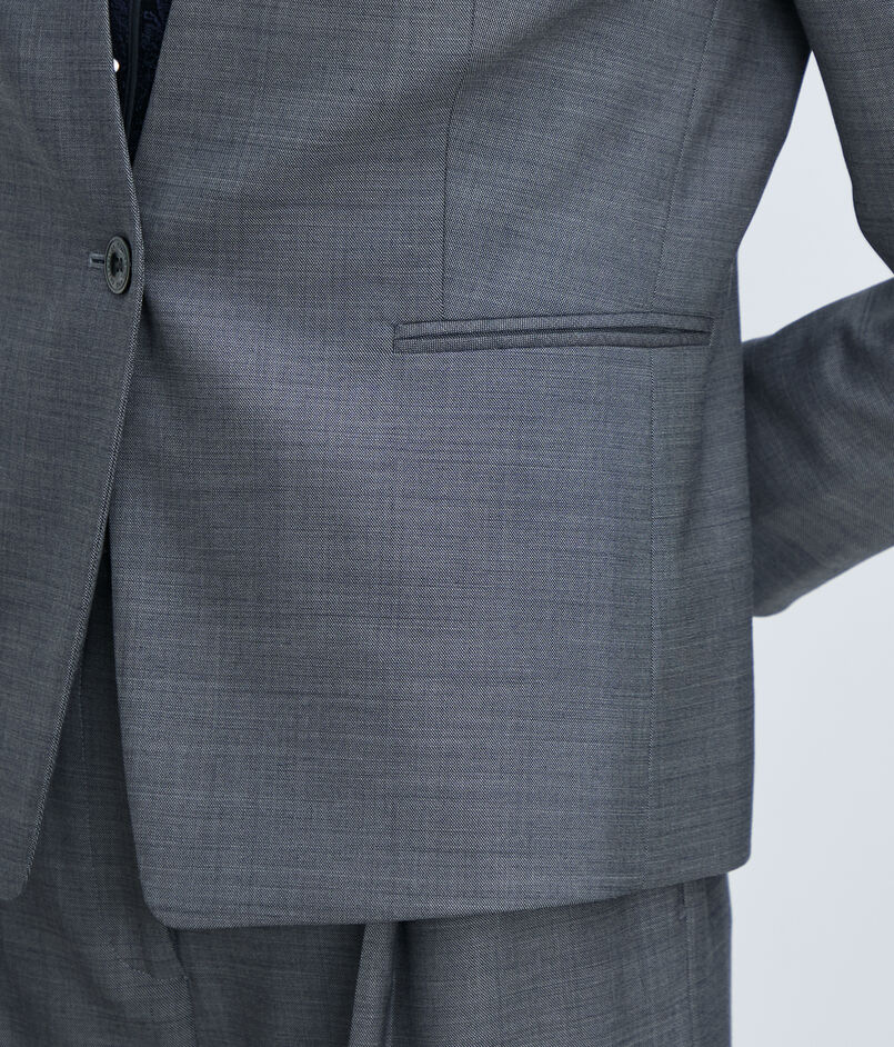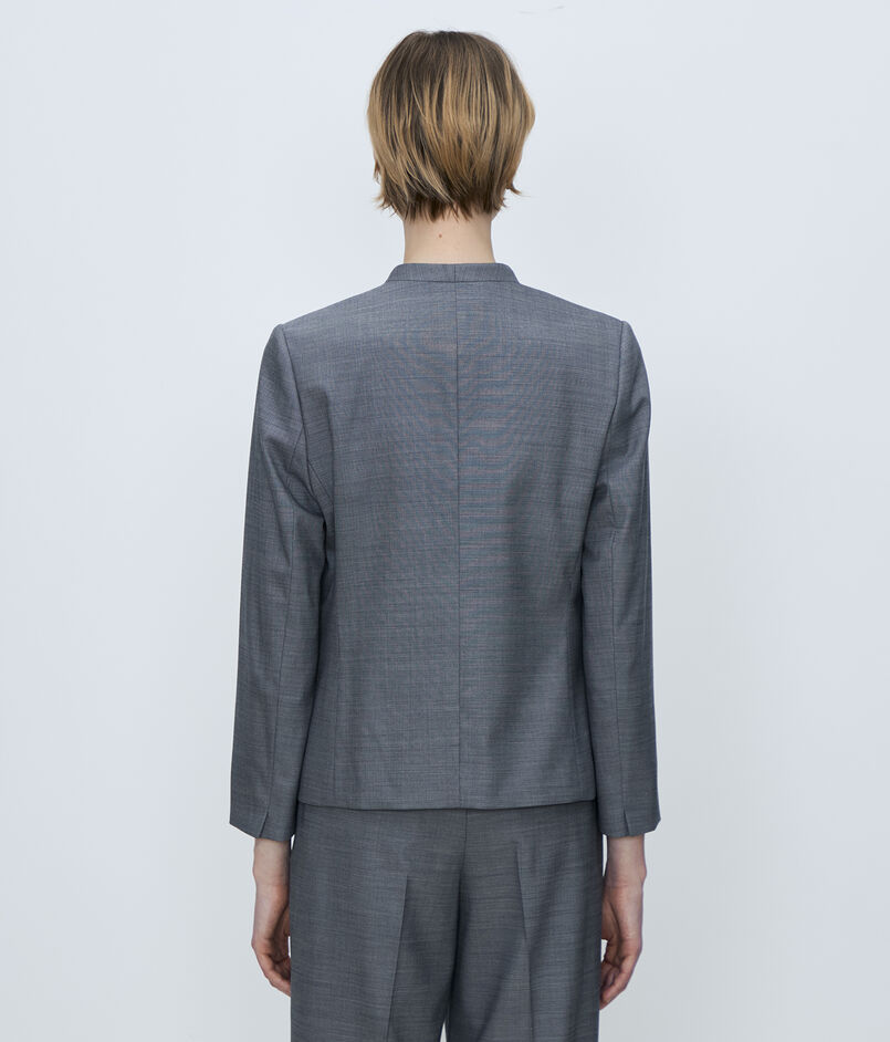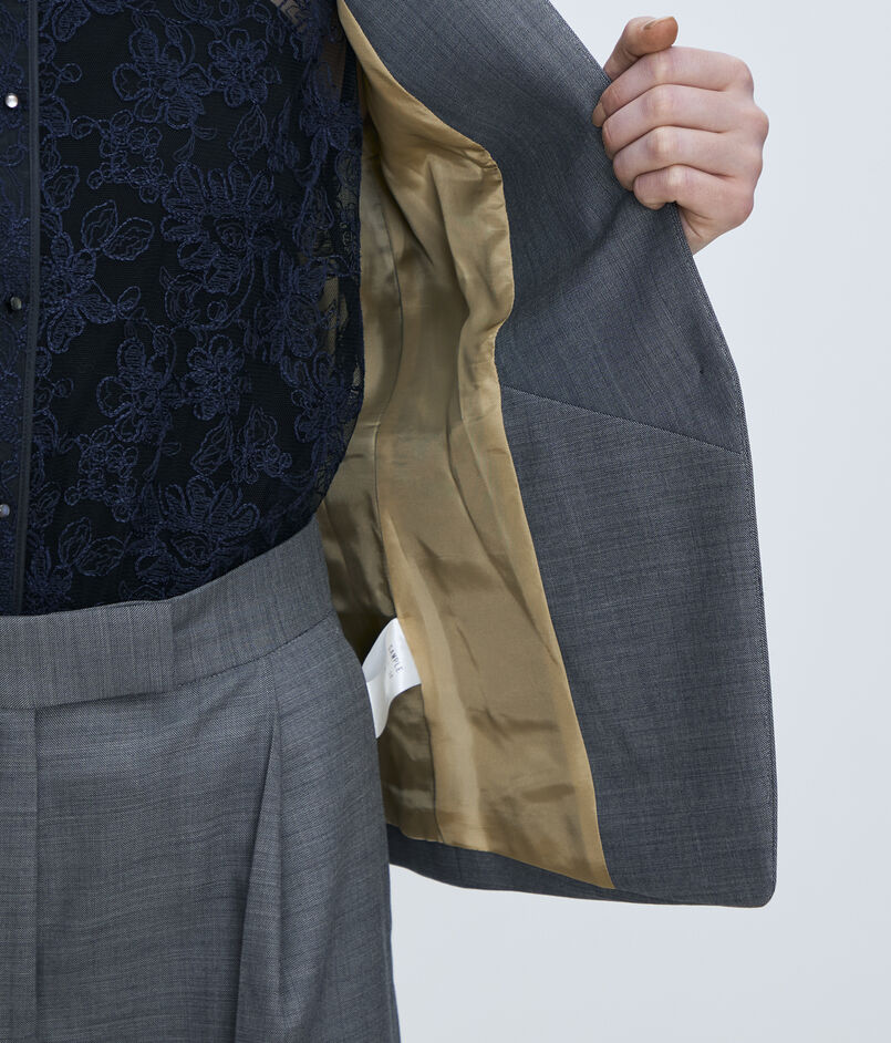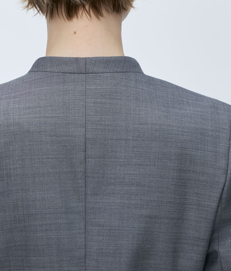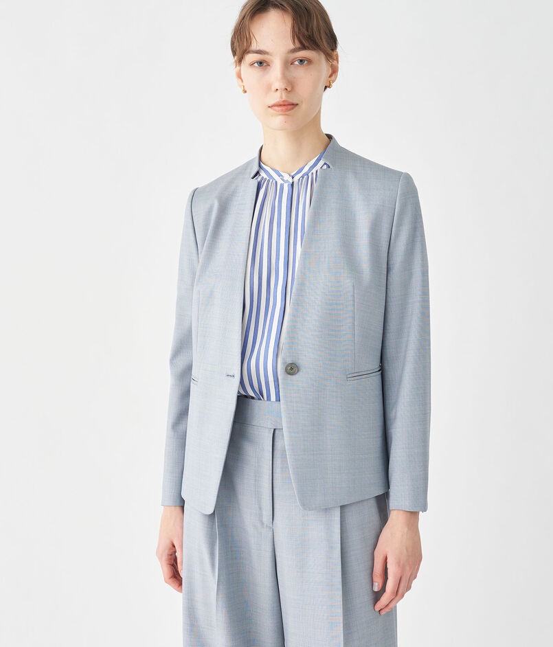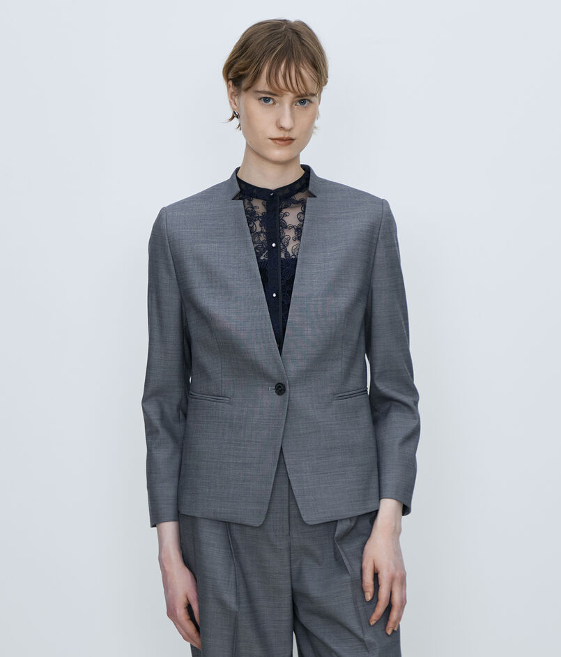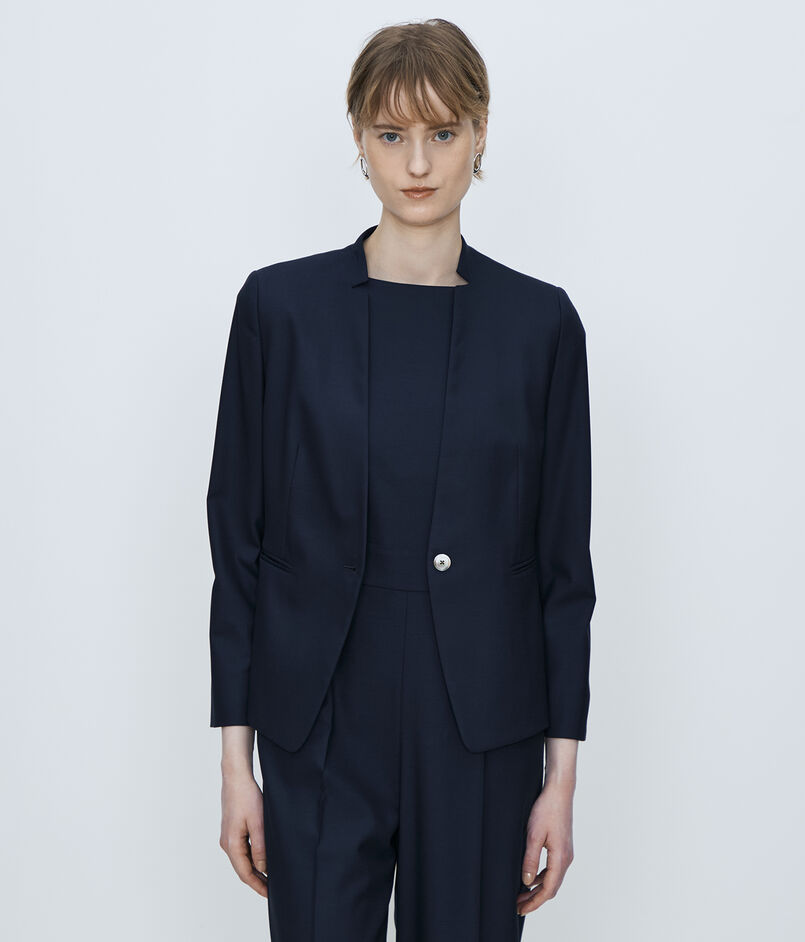 やや短めのコンパクトな丈感とエッジの効いたウエストシェイプがモダンな印象の一着。