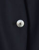 やや高めの位置にボタンを配すことで、フロントボタンを留めればよりすっきりとしたシルエットに。