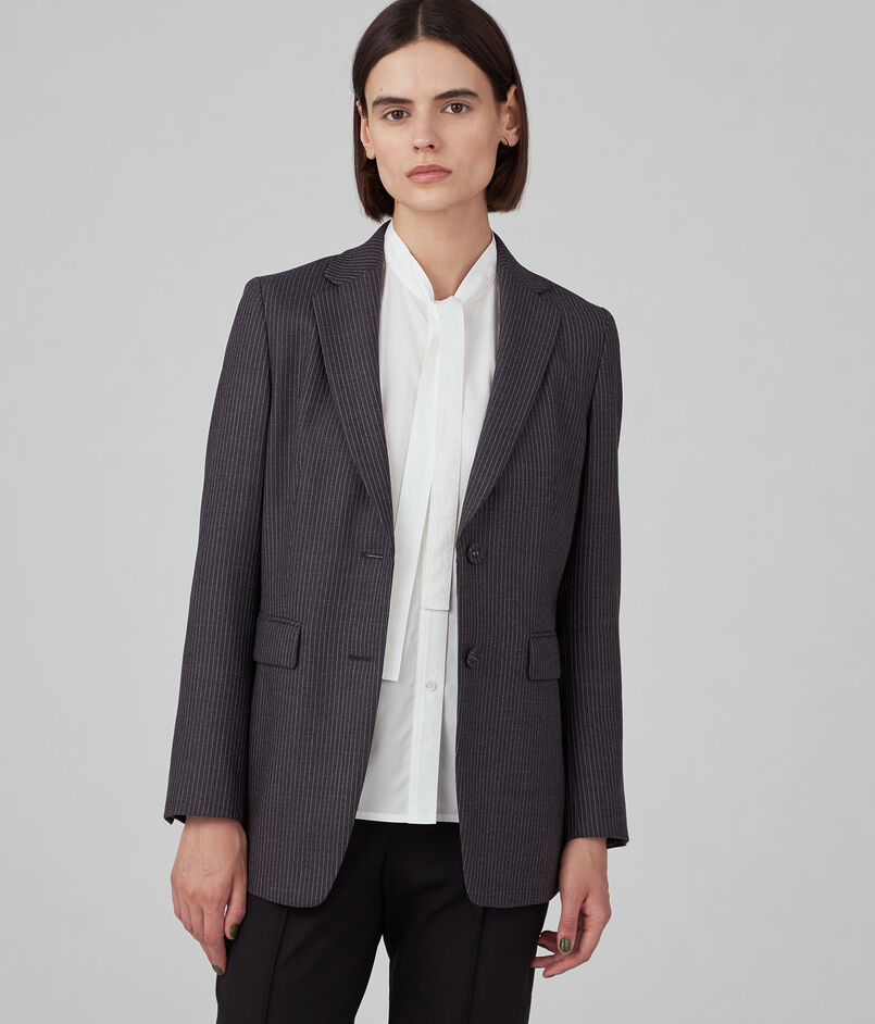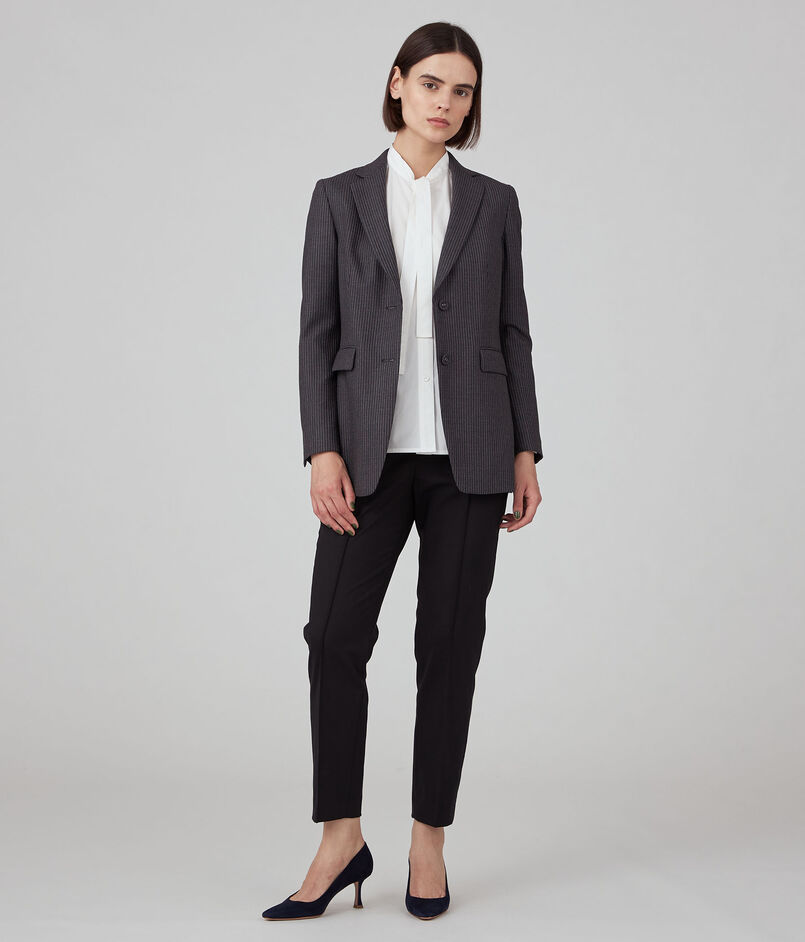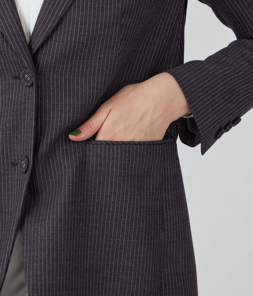 なめらかな手触りと適度なハリのあるストライプ柄のウール素材を使用したシリーズ。