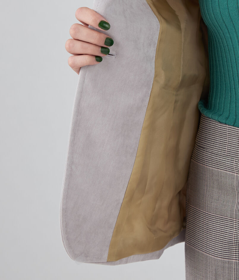 シャンブレー織りにすることで奥行きのある独特な色味に仕上げたベッチン素材のジャケット。