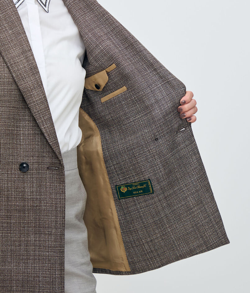 上質なウールとシルクをブレンドさせたエレガントな表情のイタリア製の素材を使用したジャケット。