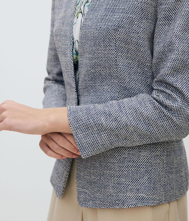春らしい爽やかな色合いとツイードならではの凹凸のある表面感が特徴のジャケット。