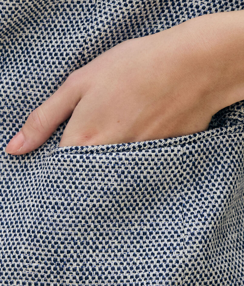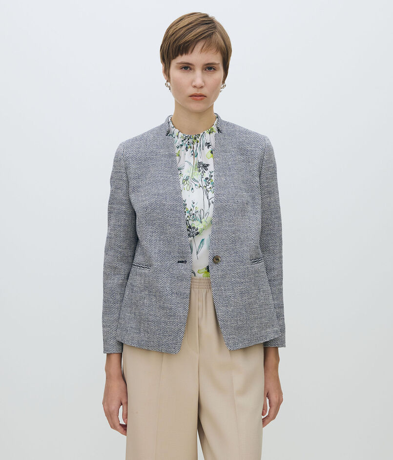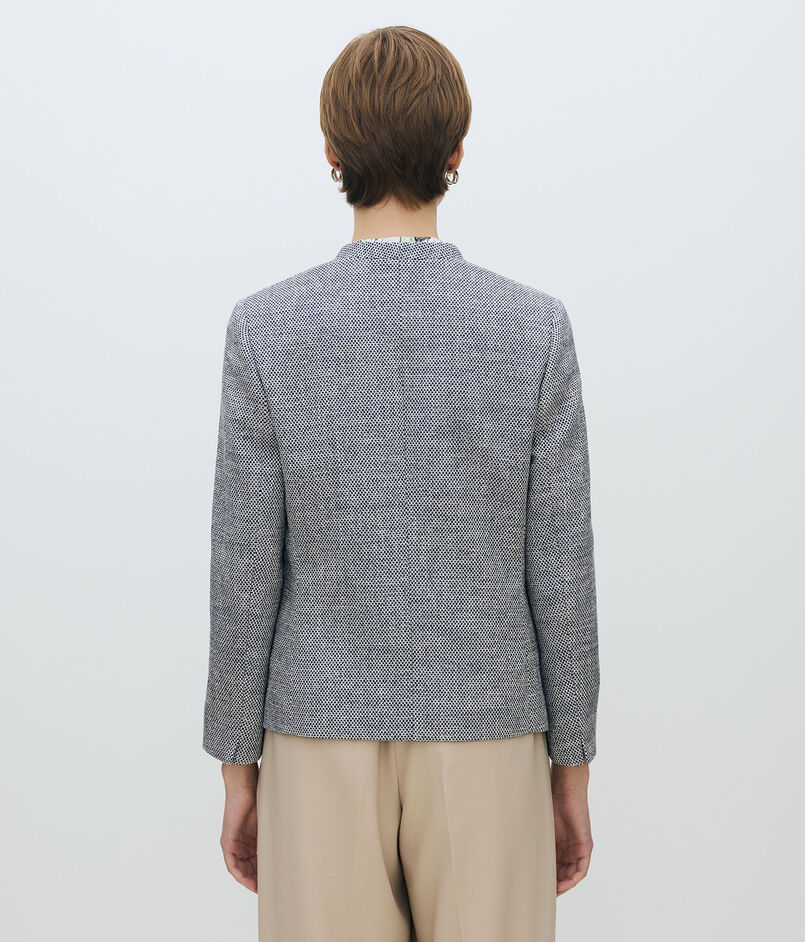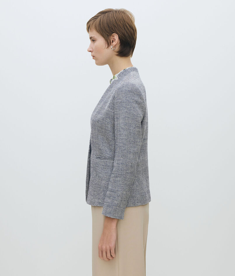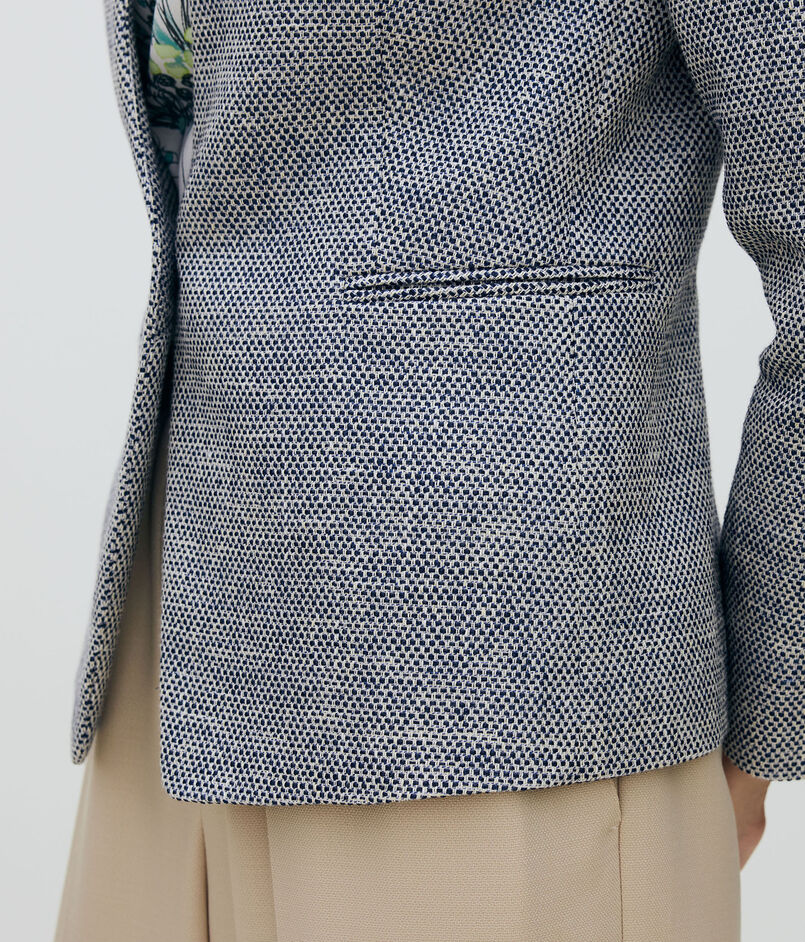 春らしい爽やかな色合いとツイードならではの凹凸のある表面感が特徴のジャケット。