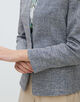 やや高めの位置にボタンを配しているので、フロントを留めればよりすっきりとしたシルエットで着用いただけます。