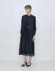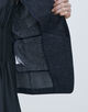 深めのVネックラインと刻みカッティングがシャープなアクセントになっています。