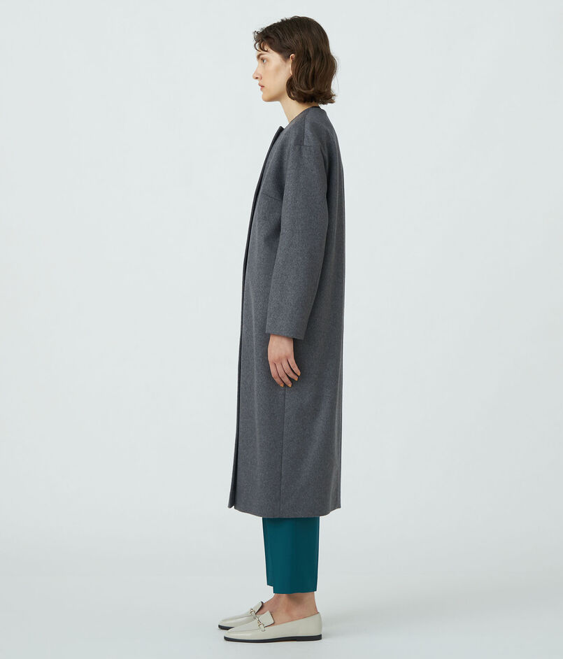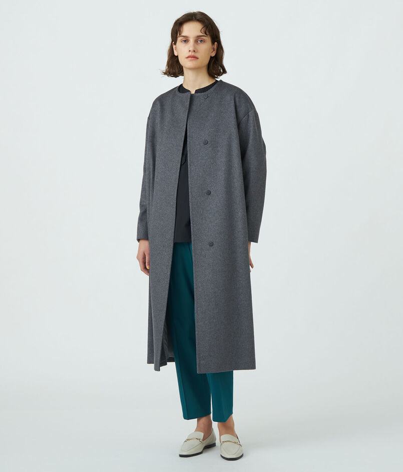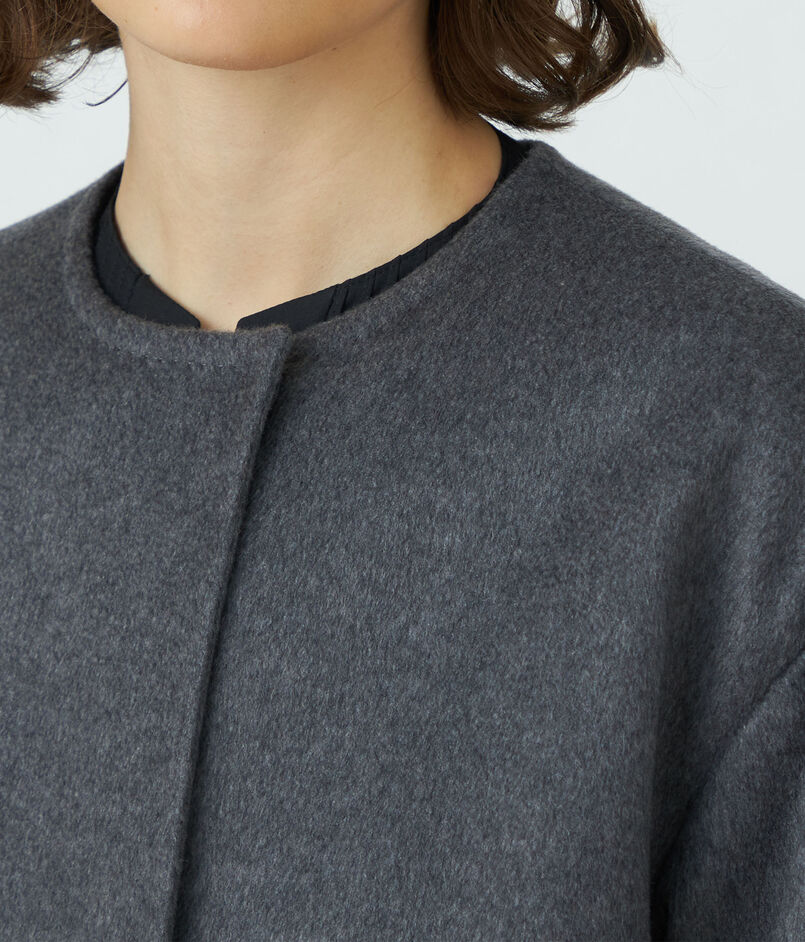 ウェービーカシミヤ ノーカラーコート