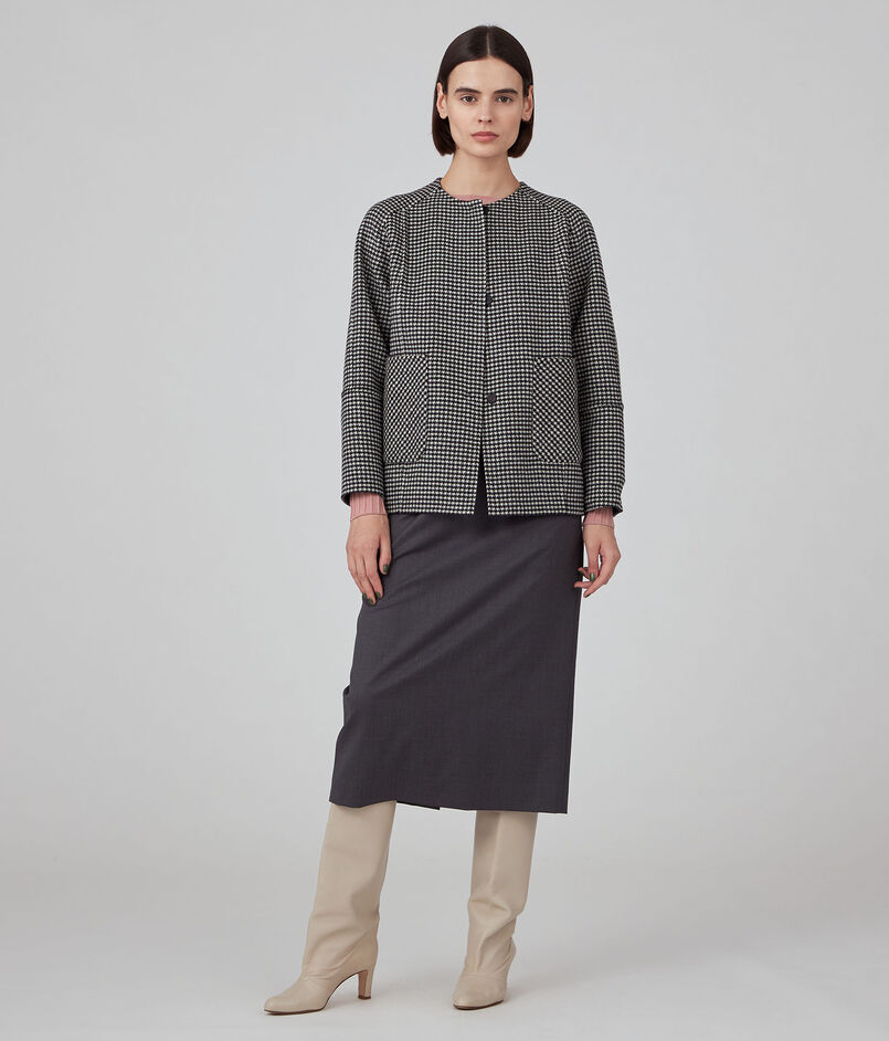 クラシカルなハウンドトゥース柄とクリーンな印象のグレー無地、異なる二つの表情をお楽しみいただけます。