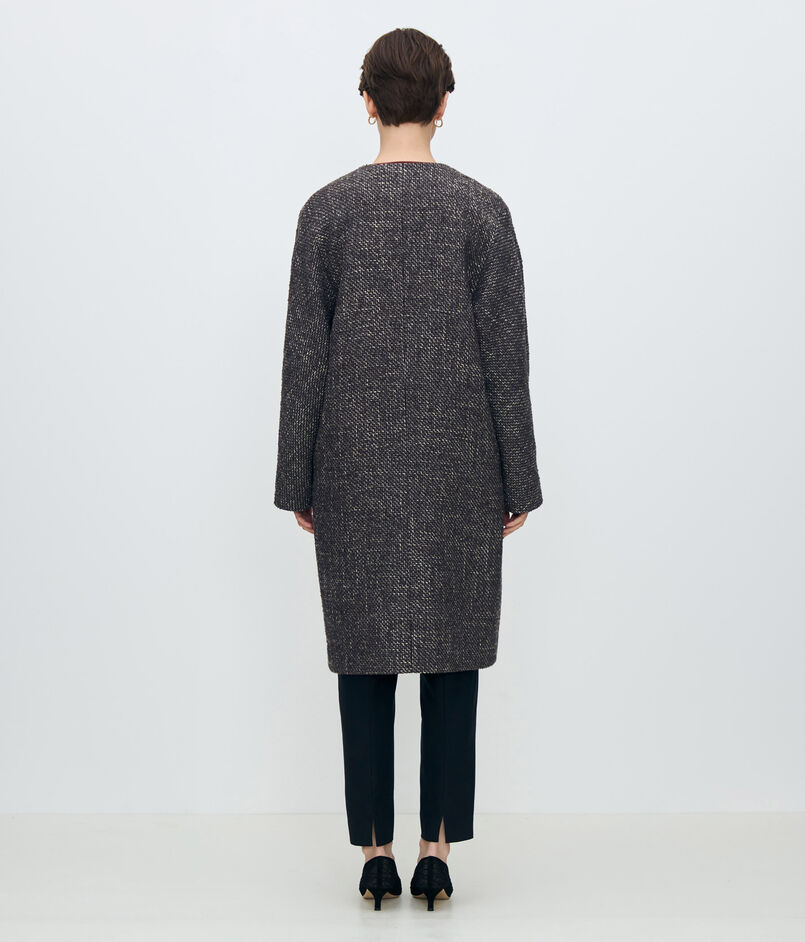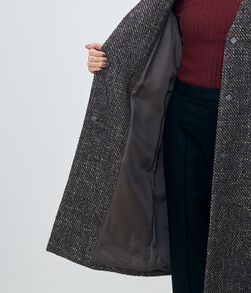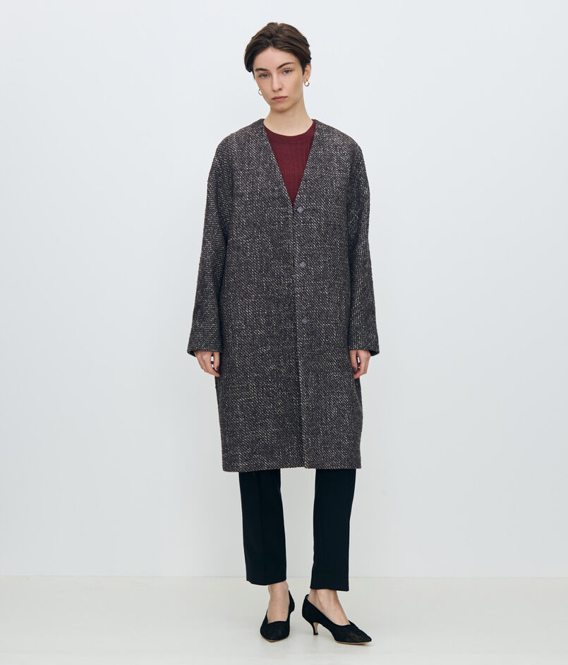 優しく絶妙な色合いと伸縮性に優れた素材が魅力的なコート。