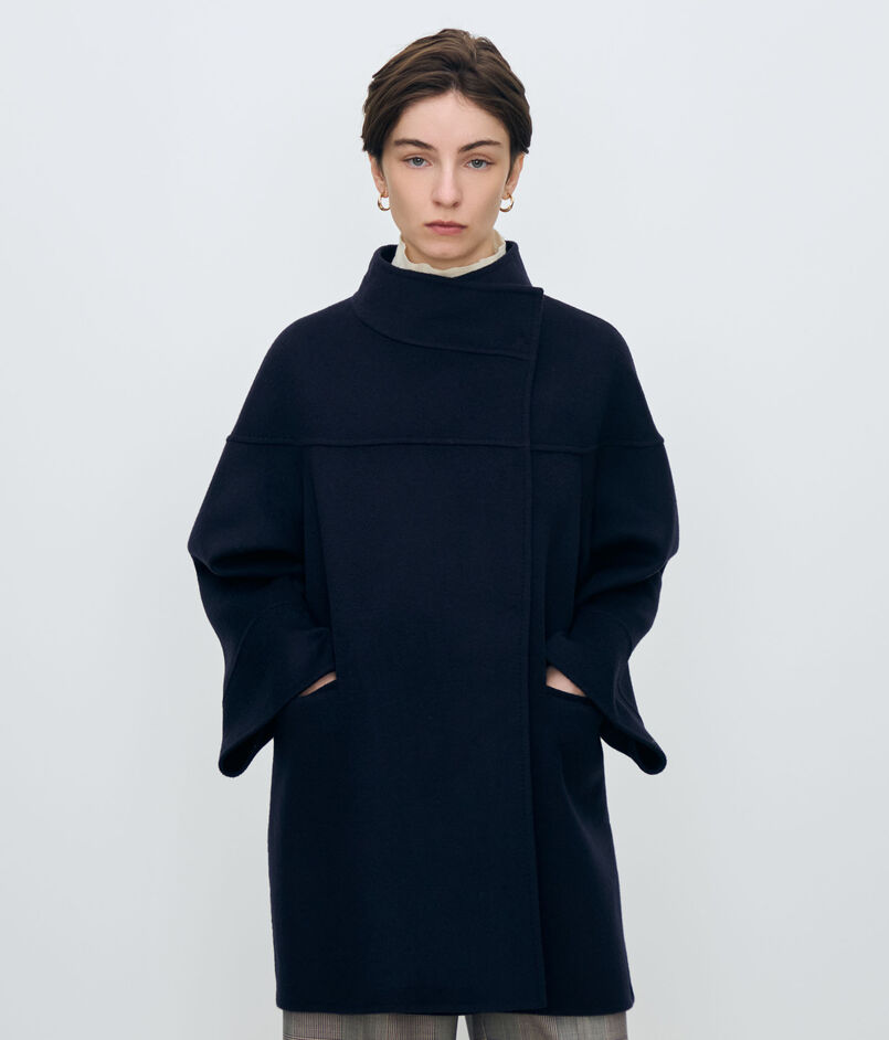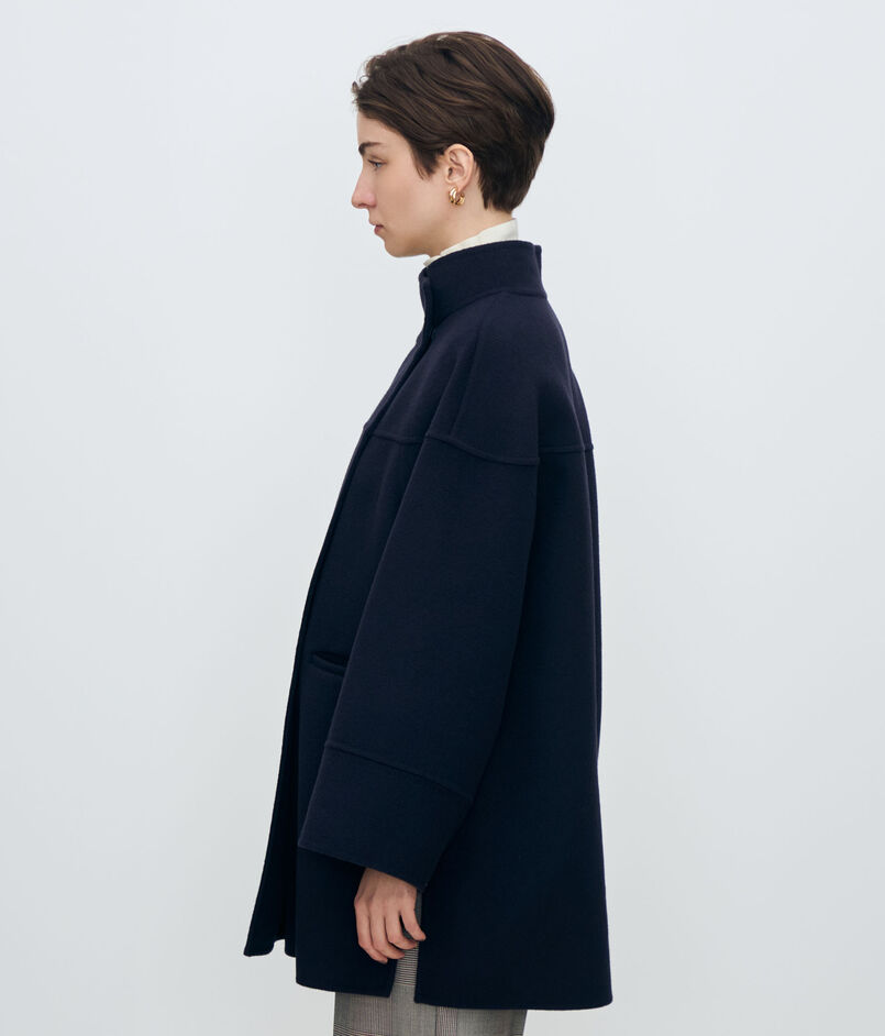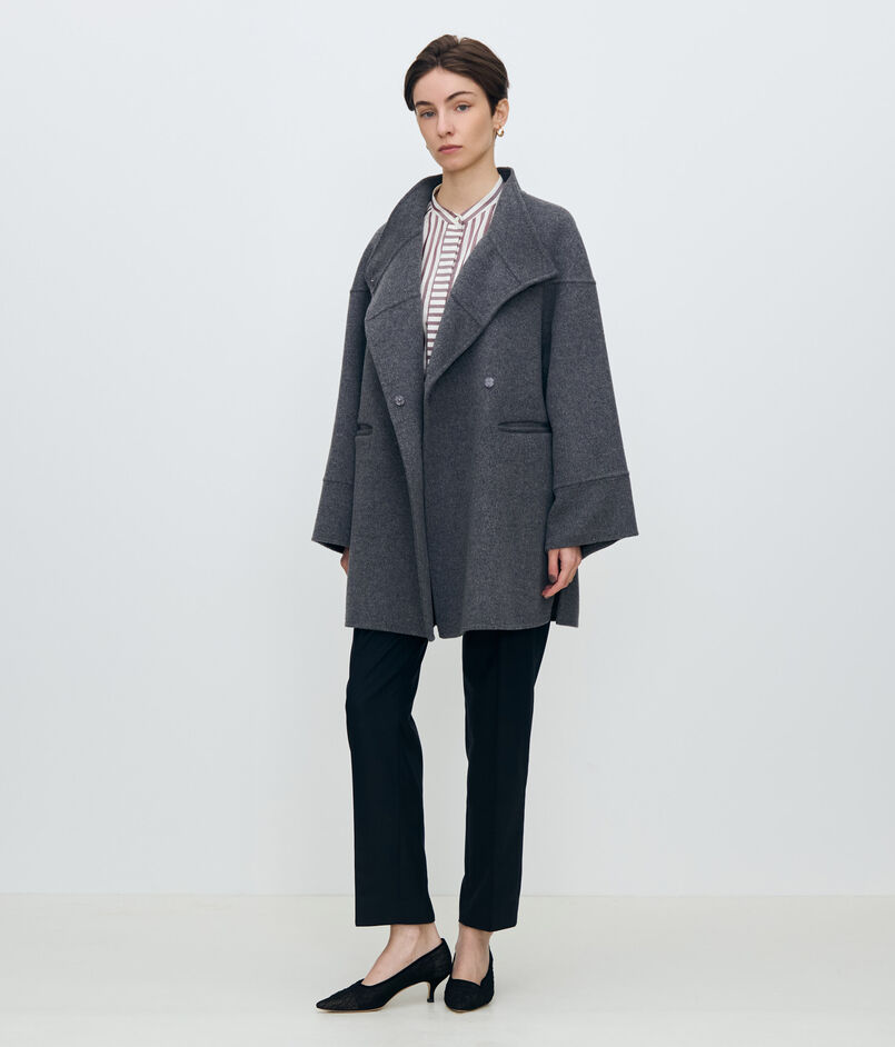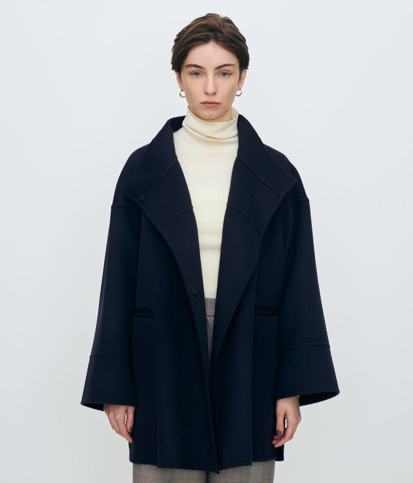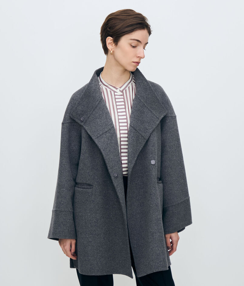 上品な光沢感のあるウールのダブルフェイス素材を使用したコート。
