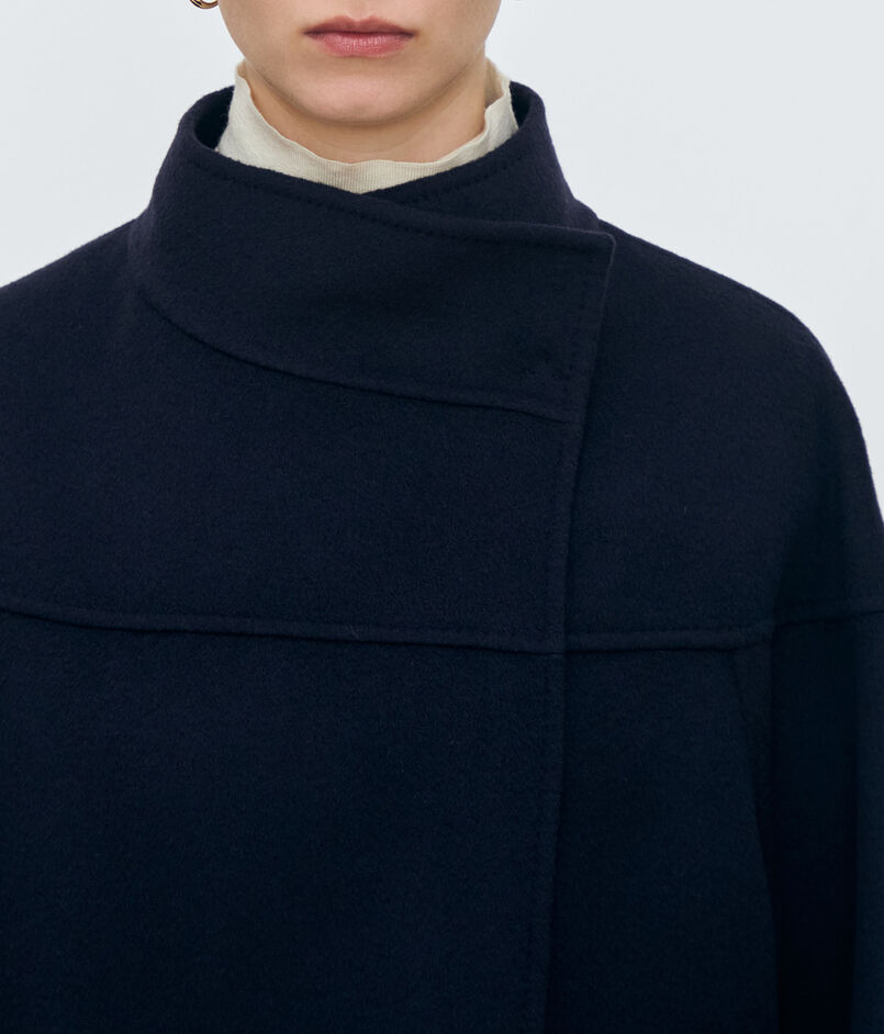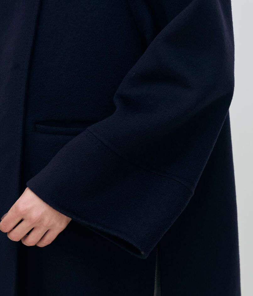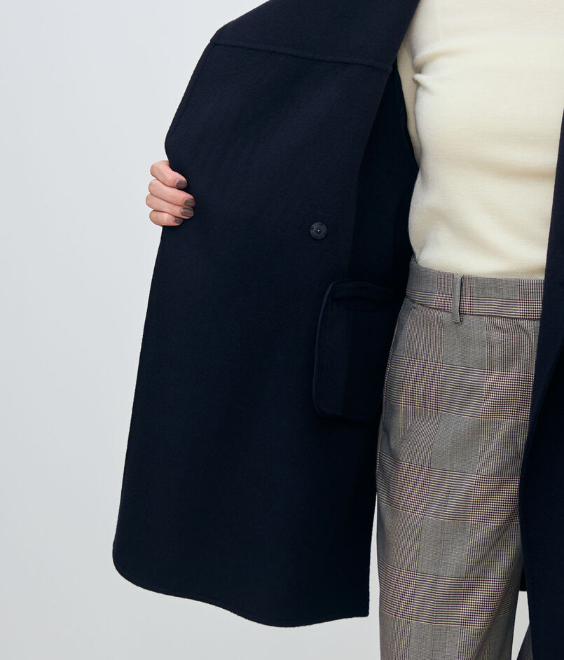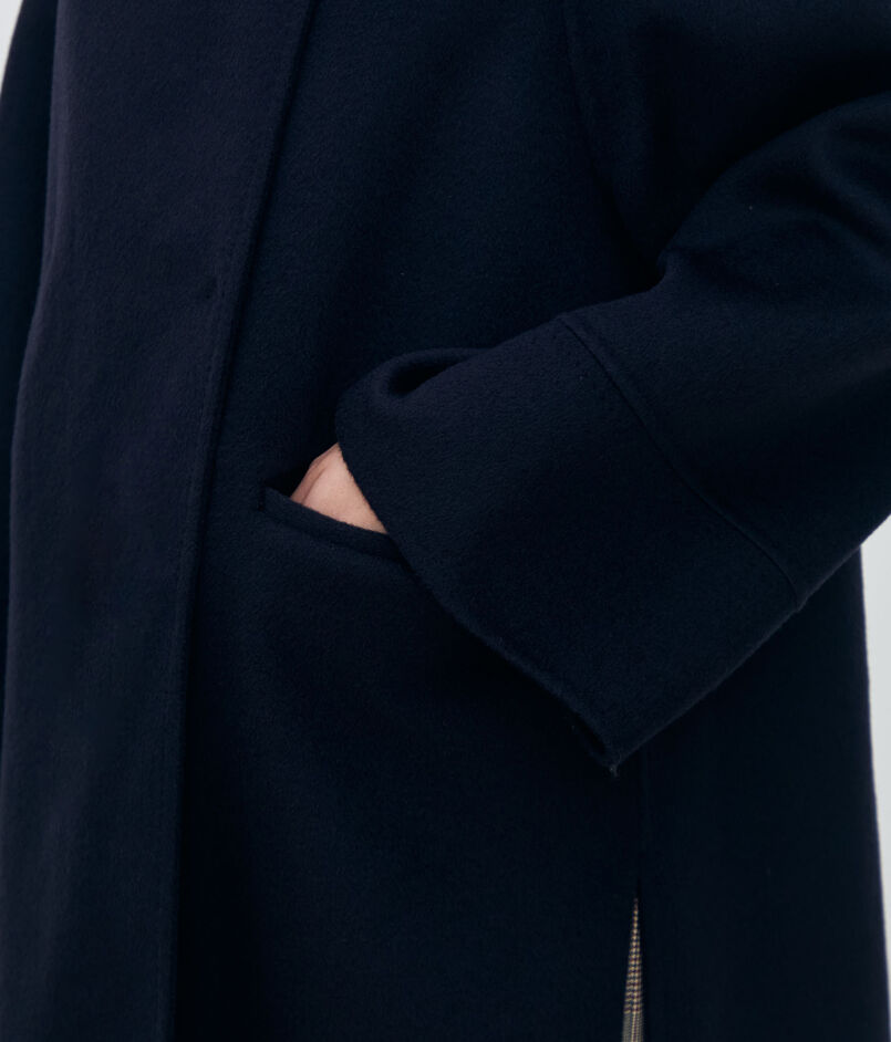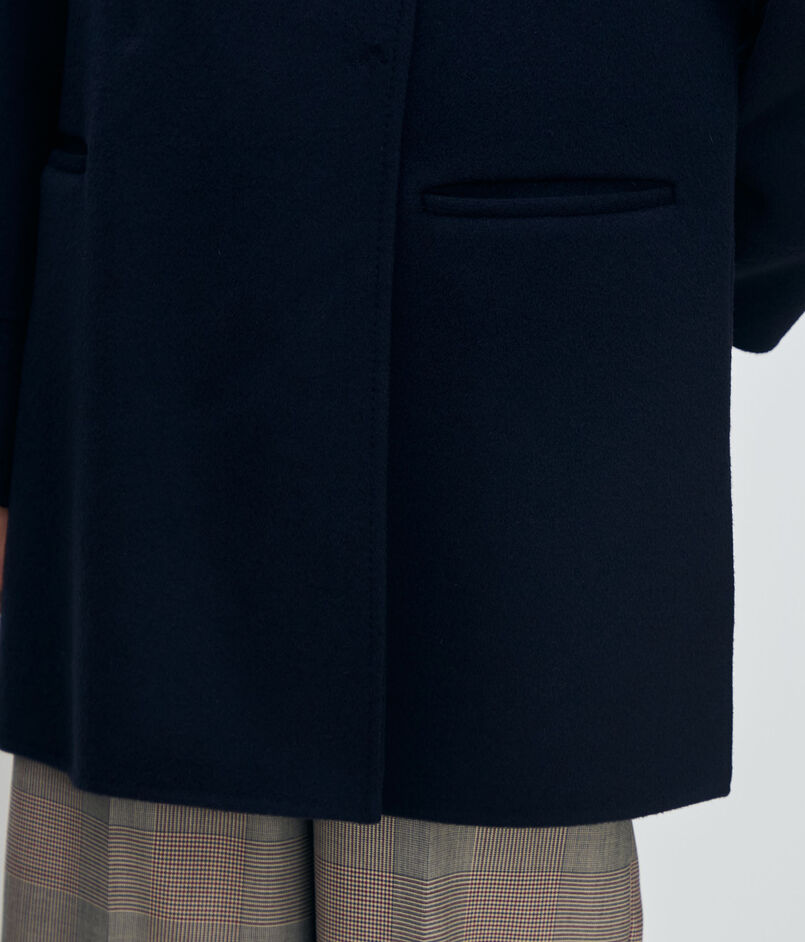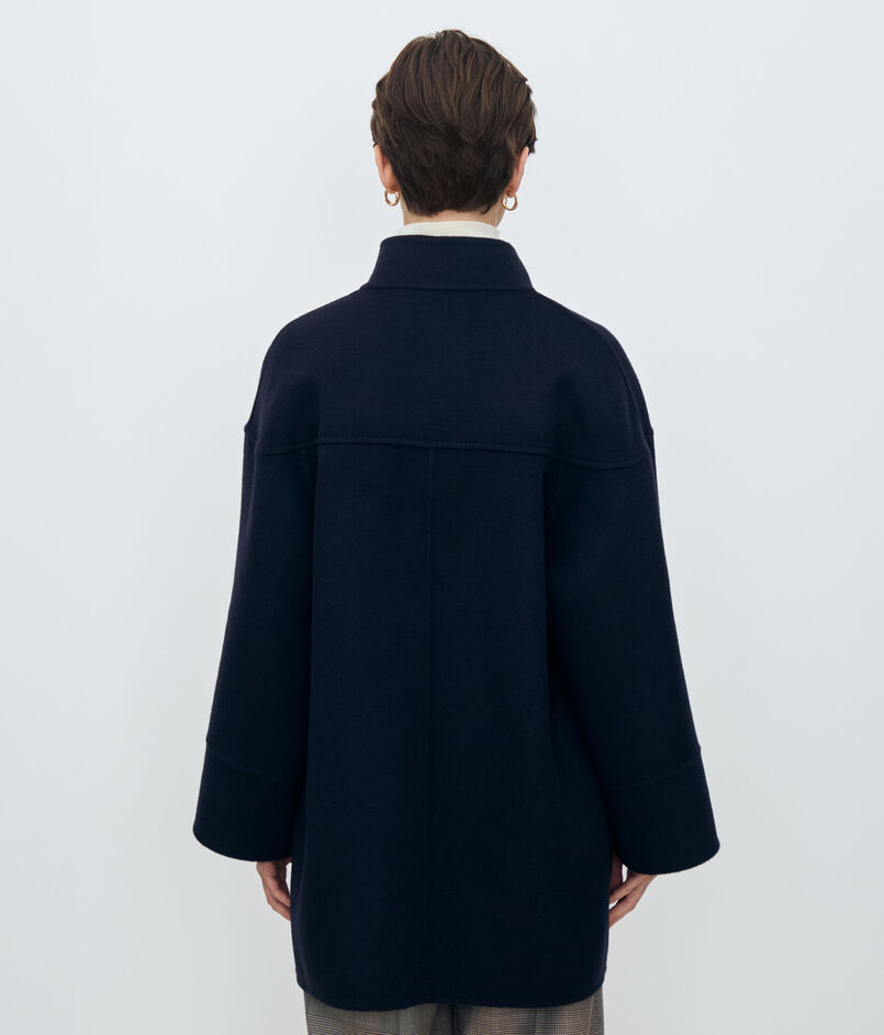 上品な光沢感のあるウールのダブルフェイス素材を使用したコート。