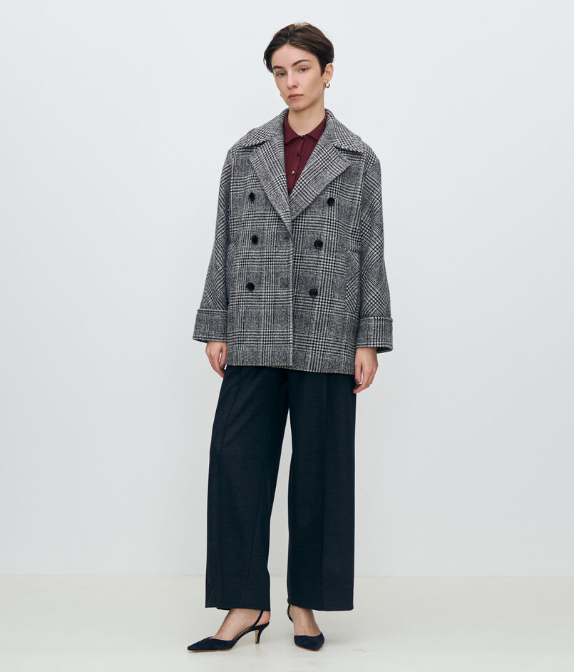 ウールカシミヤグレンチェック ダブルブレストコート