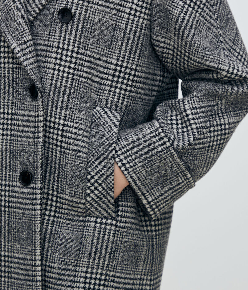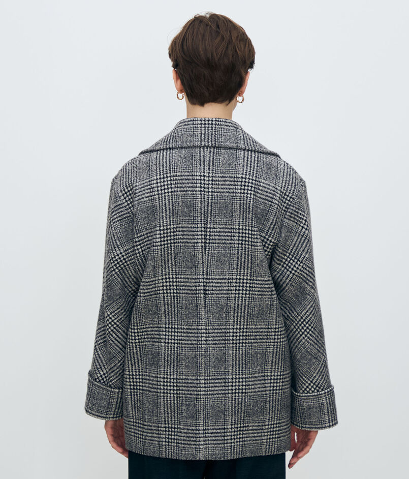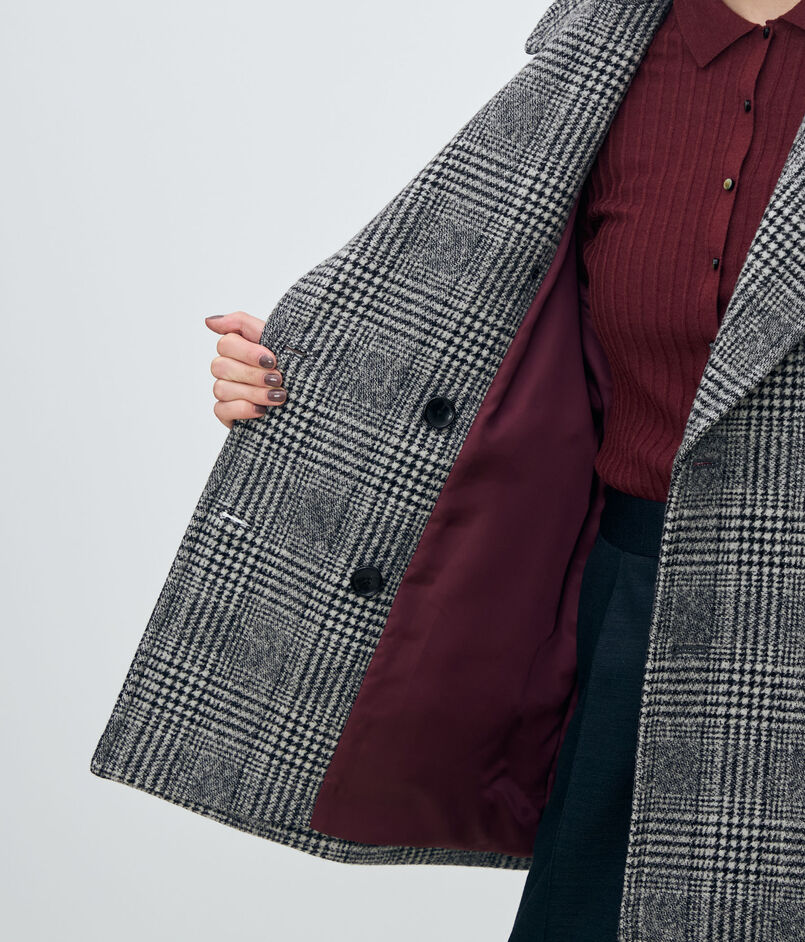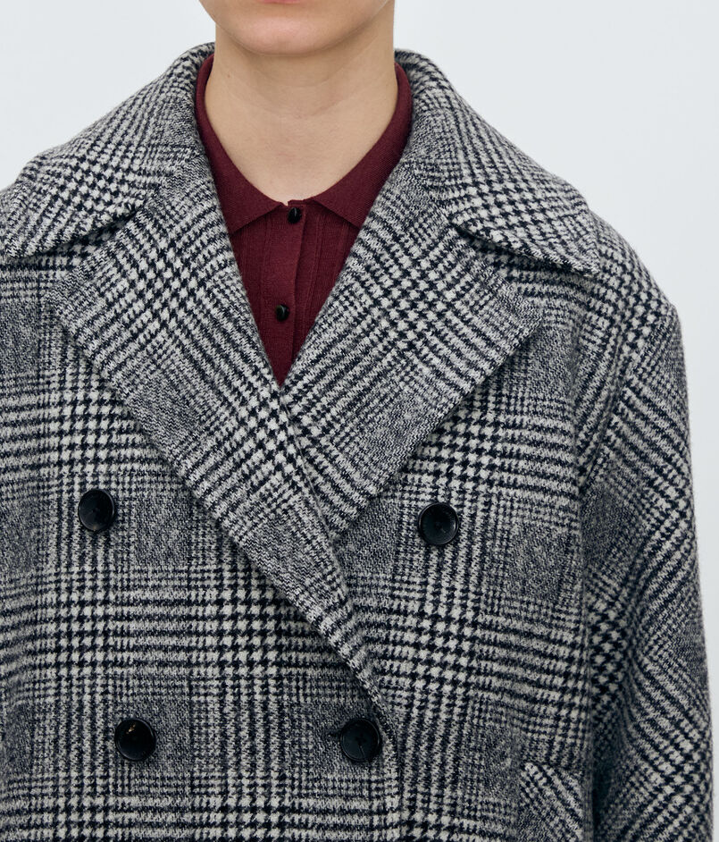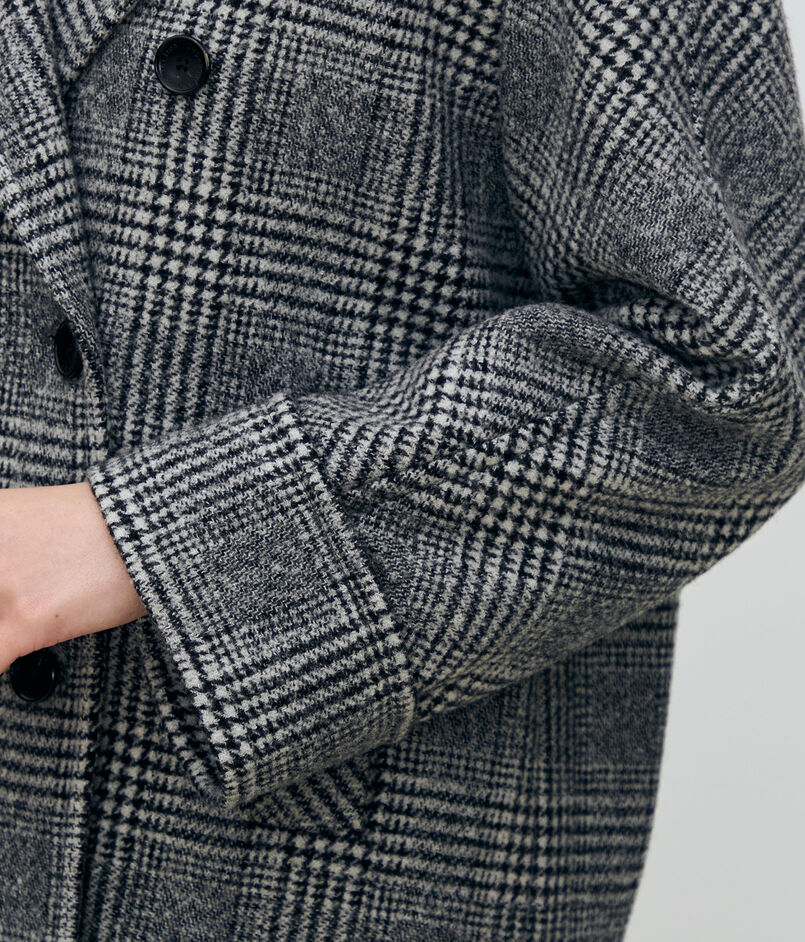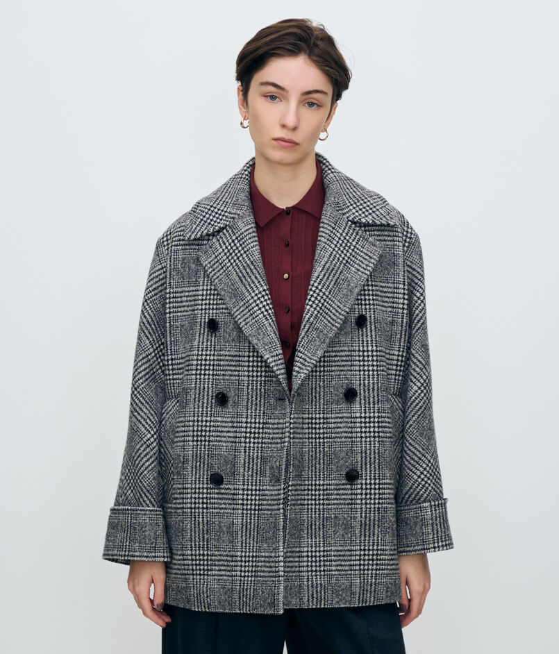 大胆なグレンチェック柄がシックな印象のダブルブレストデザインのコート。