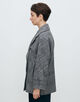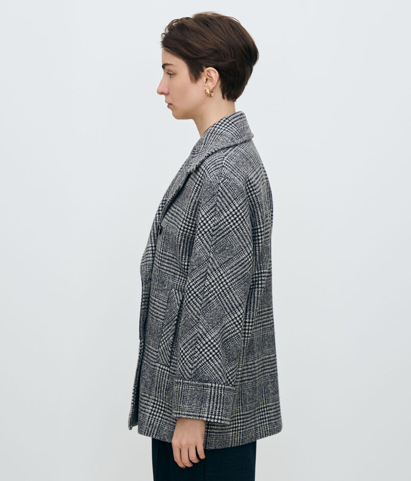 ボディ・スリーブにゆとりのあるボクシーなシルエットに首元に美しく沿う大きめの襟で、女性らしいモダンなバランスに仕上げた一着。