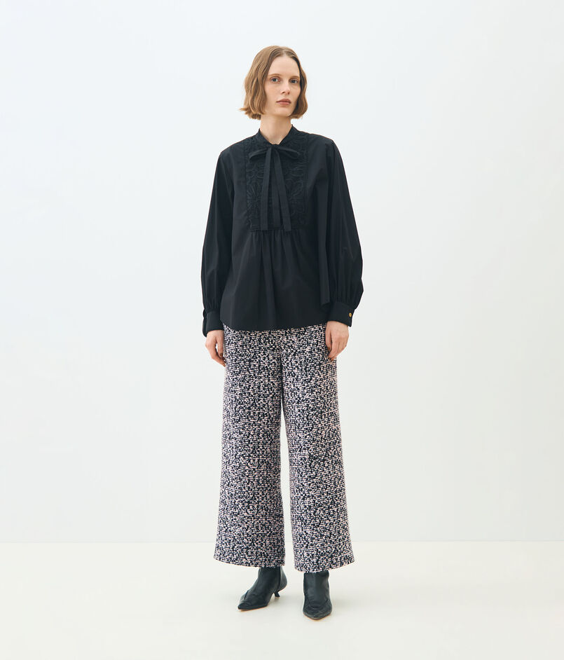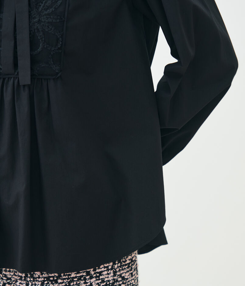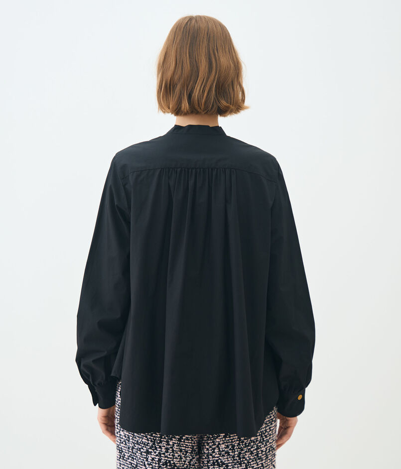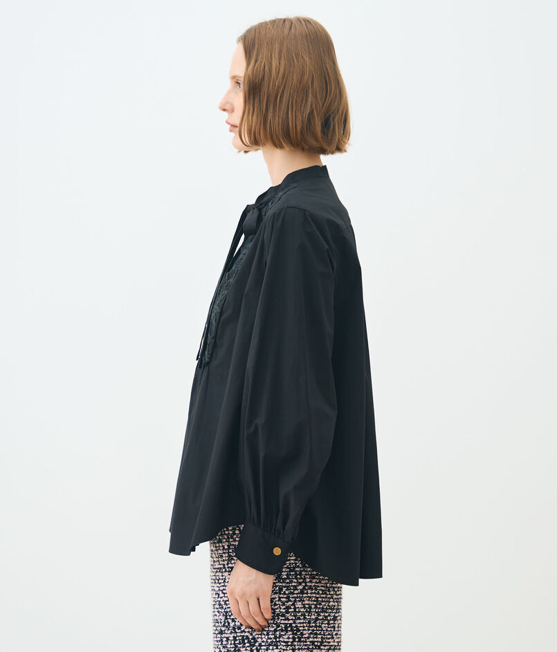 ボクシーなシルエットにふんわりとしたスリーブ、ボザムデザインでクラシカルな印象のブラウス。