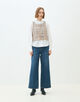 ベースのヘリンボーンツイードにカラフルな意匠糸でペーン柄を施すことで、トラディショナルな柄に華やかさと柔らかさをもたらしています。