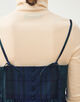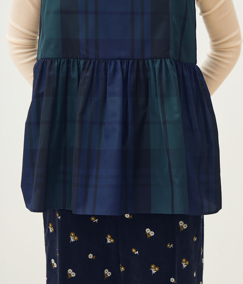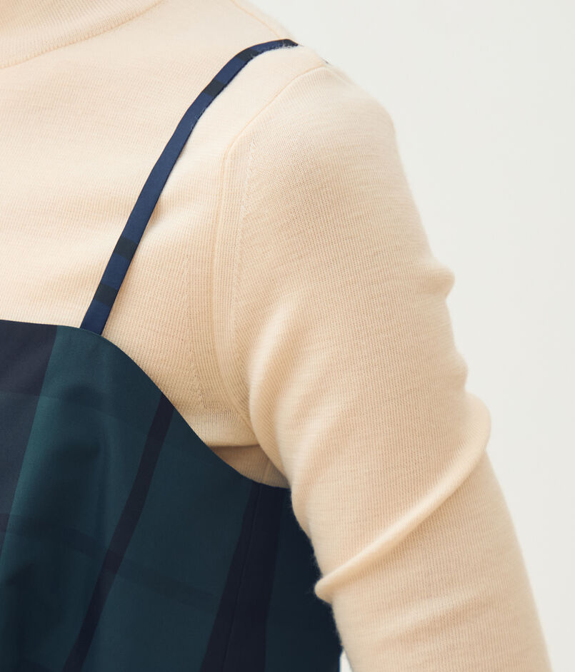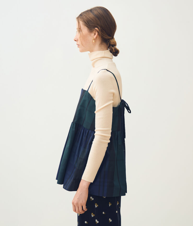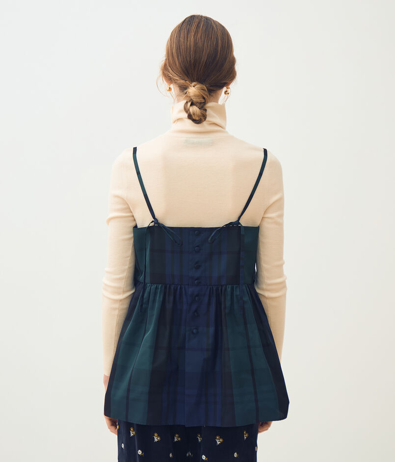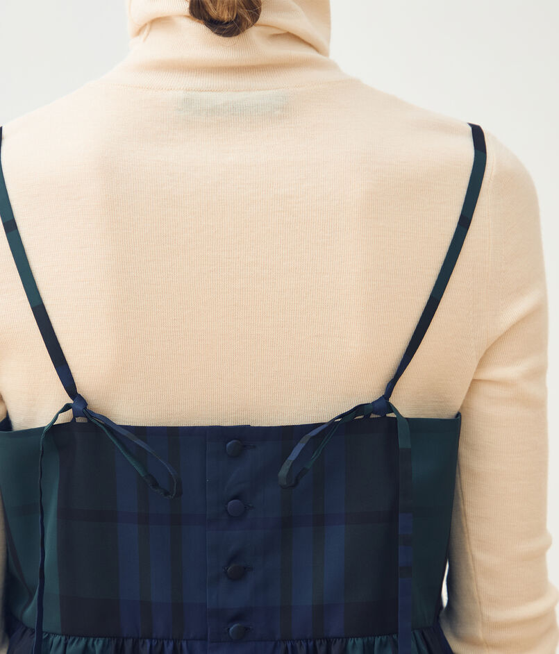 バックリボンで長さを調整でき、ブラウス・ニット・カットソーなど、さまざまなトップスのレイヤードスタイルをお楽しみいただけます。
