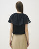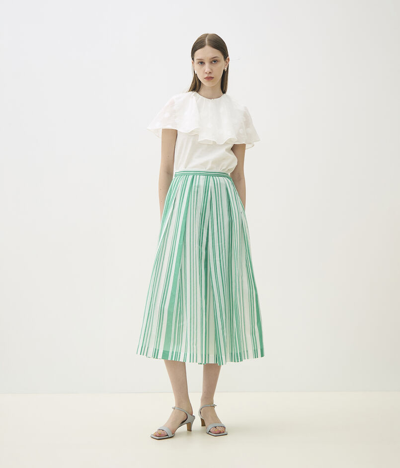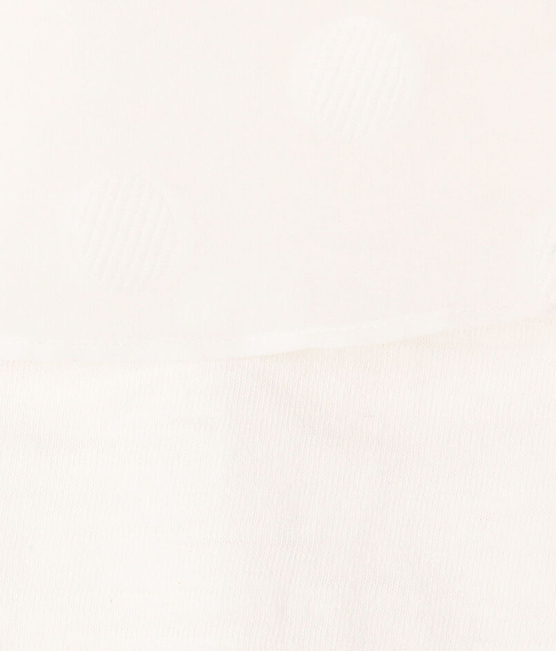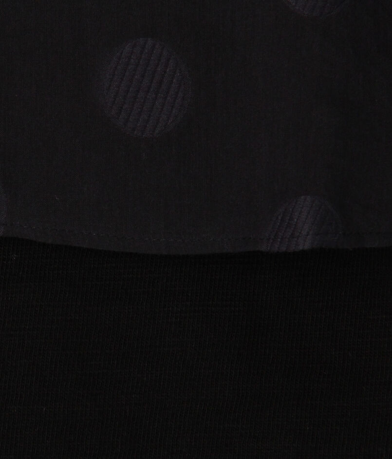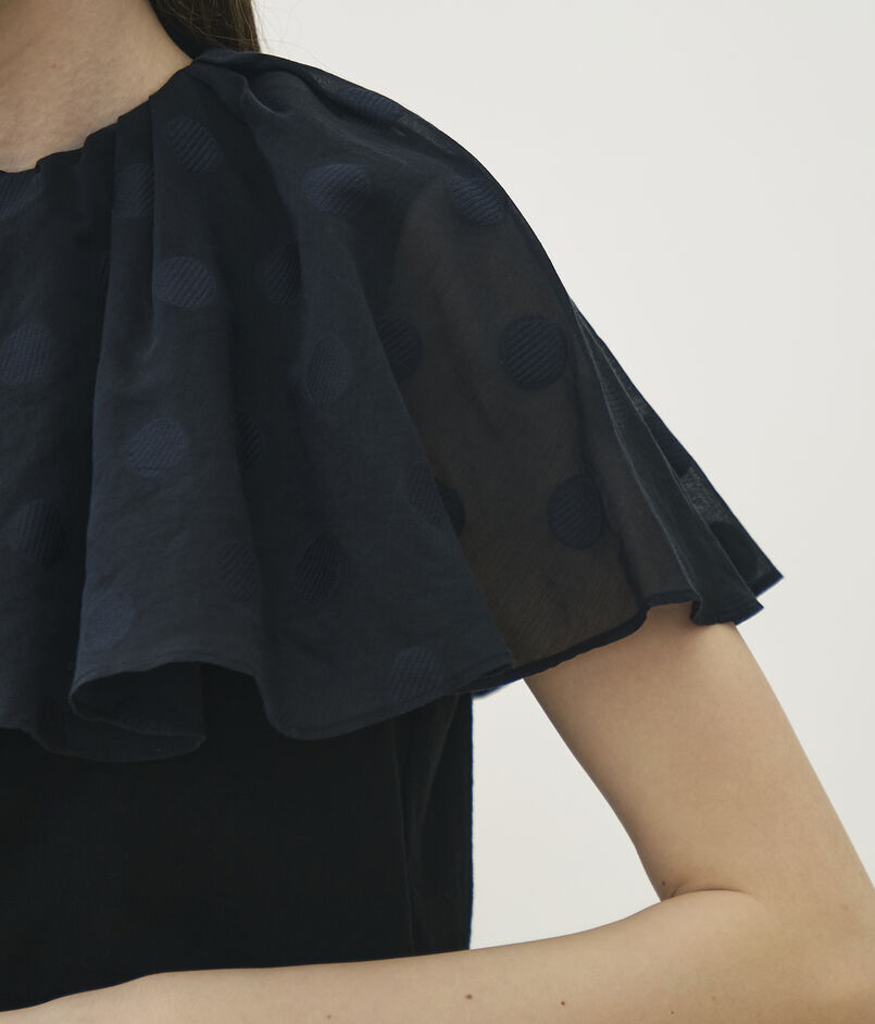 表面に凹凸感のあるジャージー素材と、ドット柄を織り込んだ〈TOMORROWLAND collection〉オリジナルのコットンシルク生地を使用したトップス。