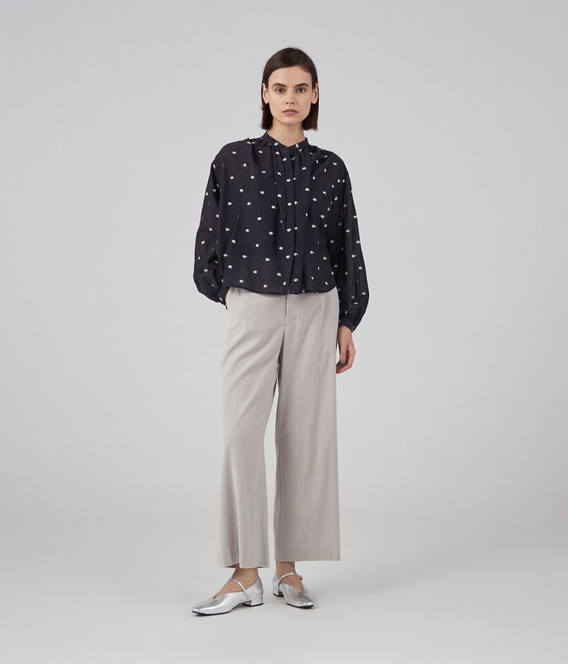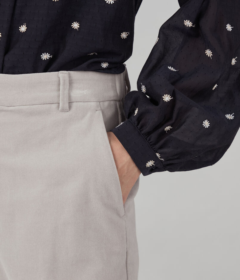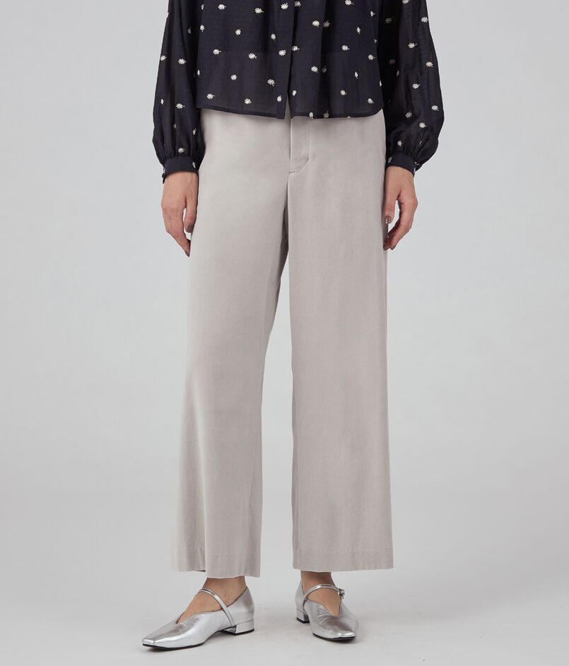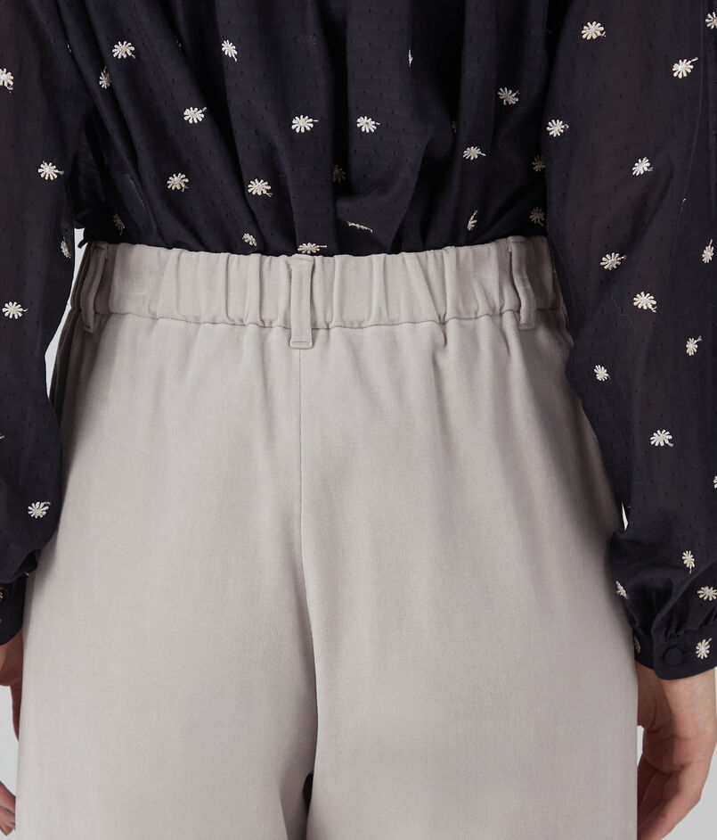 パンツはウエストがゴムの仕様でラフな作りながら、ヒップからすとんと落ちるメンズライクなシルエットですっきりとした印象。