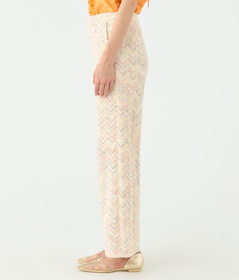 パンツはヒップ下からすとんと落ちるストレートシルエットですっきりとしたバランスの一着。