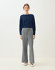 パンツはヒップ下からすとんと落ちるストレートシルエットでリラックス感がありつつも、腰まわりをすっきりとさせることで上品なバランスに仕上げた一着。